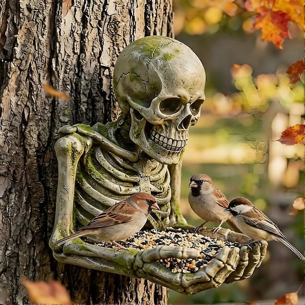 Skeleton Tree-Mounted Bird Feeder Gothic Resin Garden Statue Weatherproof Outdoor Decor for Backyard, Patio & Fence Hand-Held Feeder for Cardinals