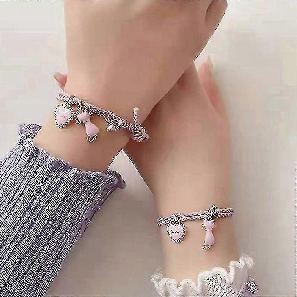 Magnetic Couple Bracelets with Cat Love Heart Pendant Friendship Gifts Him Her