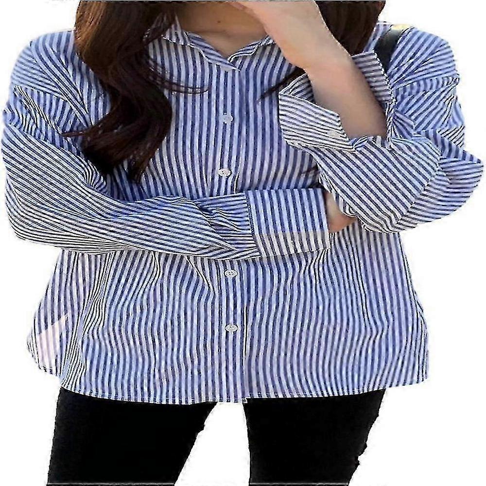 Women's Long Sleeve Striped Button Down Shirt Blouse with Pocket Office Work