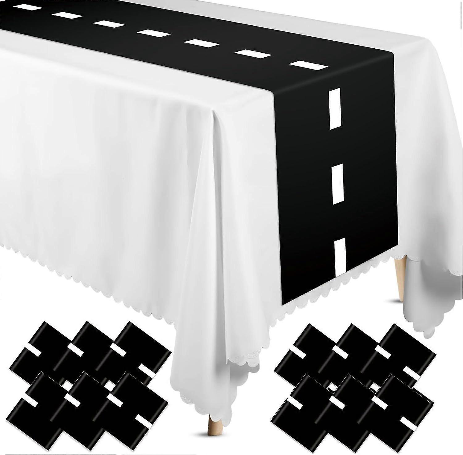12 Pcs Plastic Checkered Table Runner 14 x 108 Inch Racetrack Road Table Runner for Two Fast Car Theme Birthday Racing Party Decor Events Supplies (B