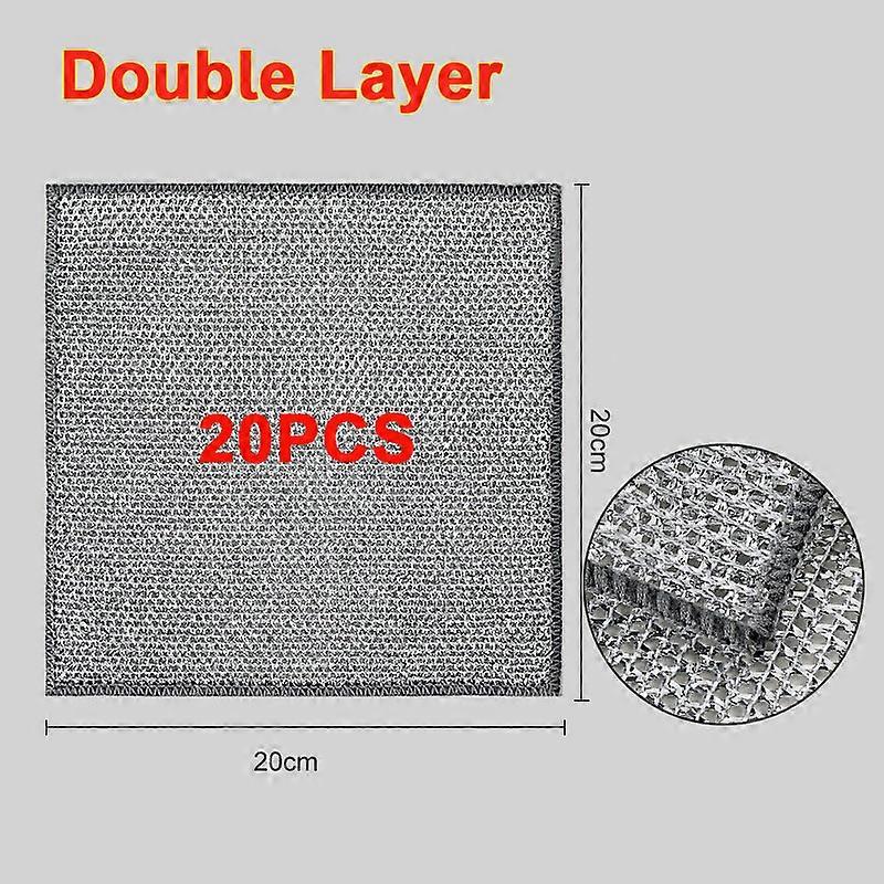 10/20pcs Thickened Steel Wire Clean Cloth Non-Scratch Double-layer Iron Microfiber Mesh Dishrag Washing Pot Rags Kitchen Towel