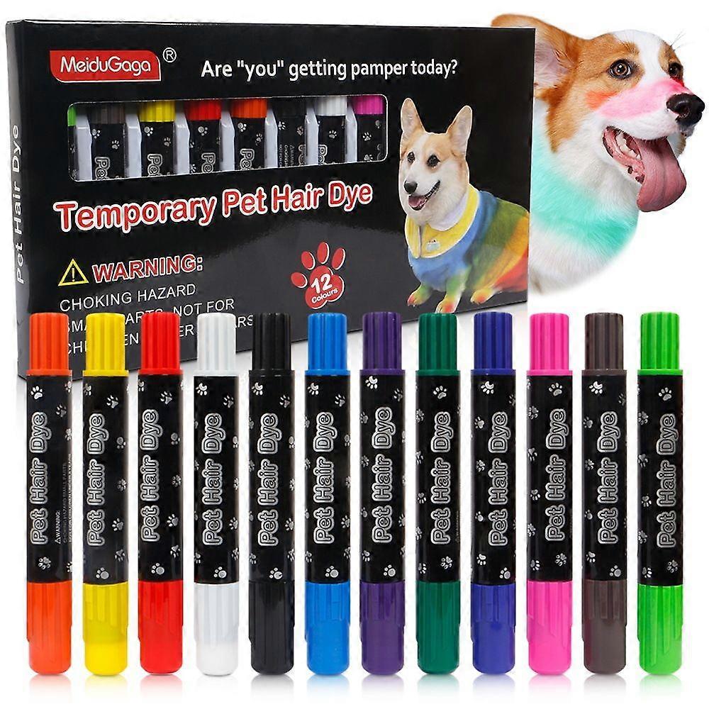 Washable Dog Hair Dye Markers, Temporary Pet Hair Dye, Temporary Fur Paint Animal Pens for Small to Large Boy and Girl Puppy Stuff Accessories, 12 Col