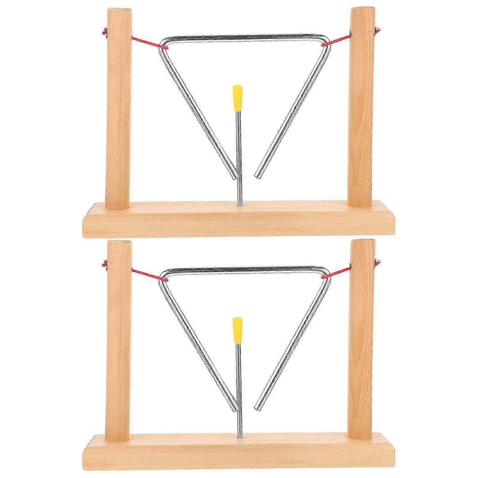 Metal Triangle Percussion Instruments for Beginners – 2 Sets with Strikers & Wooden Stands for Musical Education and Entertainment