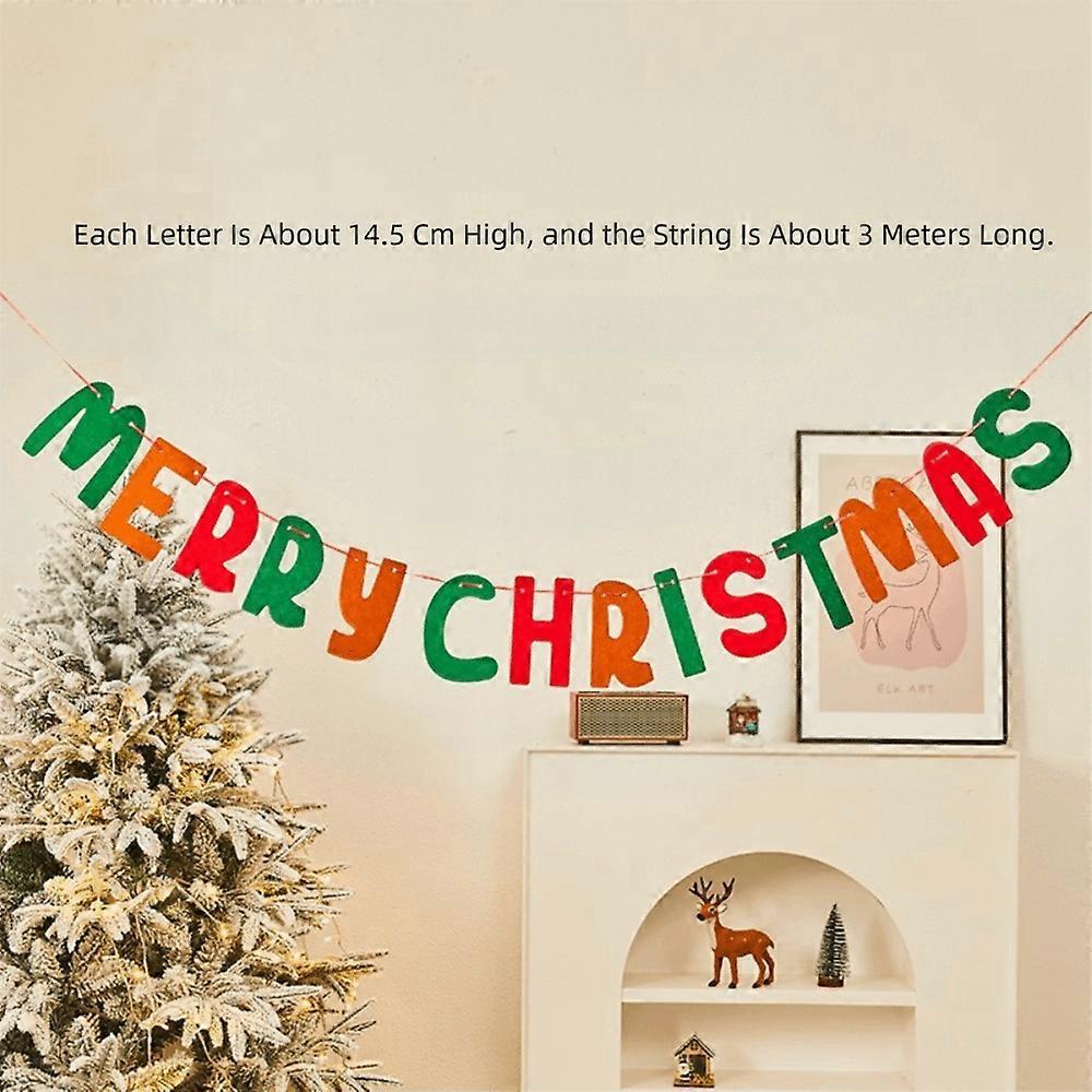 Felt Christmas Banner Red Green Santa Design Xmas Pull Flag Hanging Ornament Elk Design Party Banner Family Party