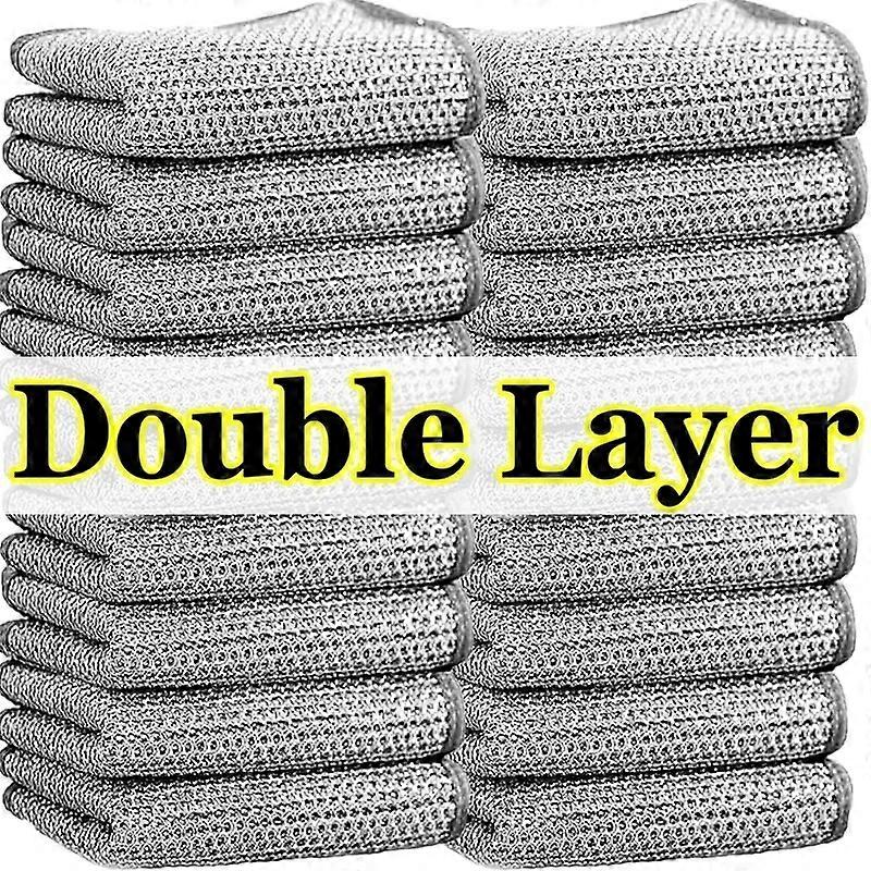 Portable Silver Wire Rag Double-layer Steel Wire Dish Cloth Kitchen Metal Wire Scouring Pad Cleaning Kitchen Supplies