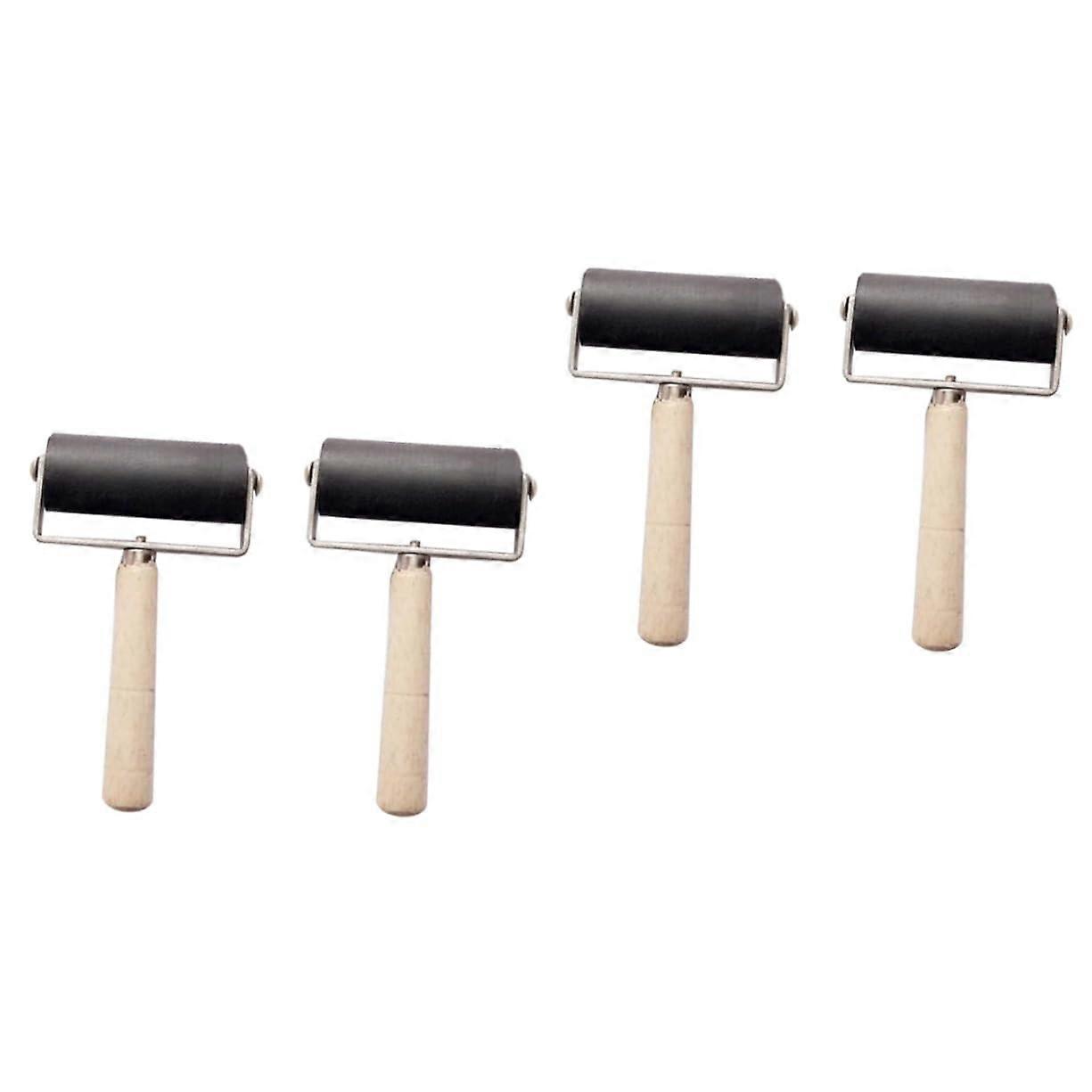 Rubber Brayer and Printmaking Roller Set, Smooth Ink Application with Wooden Handle, Black 2pcs x3