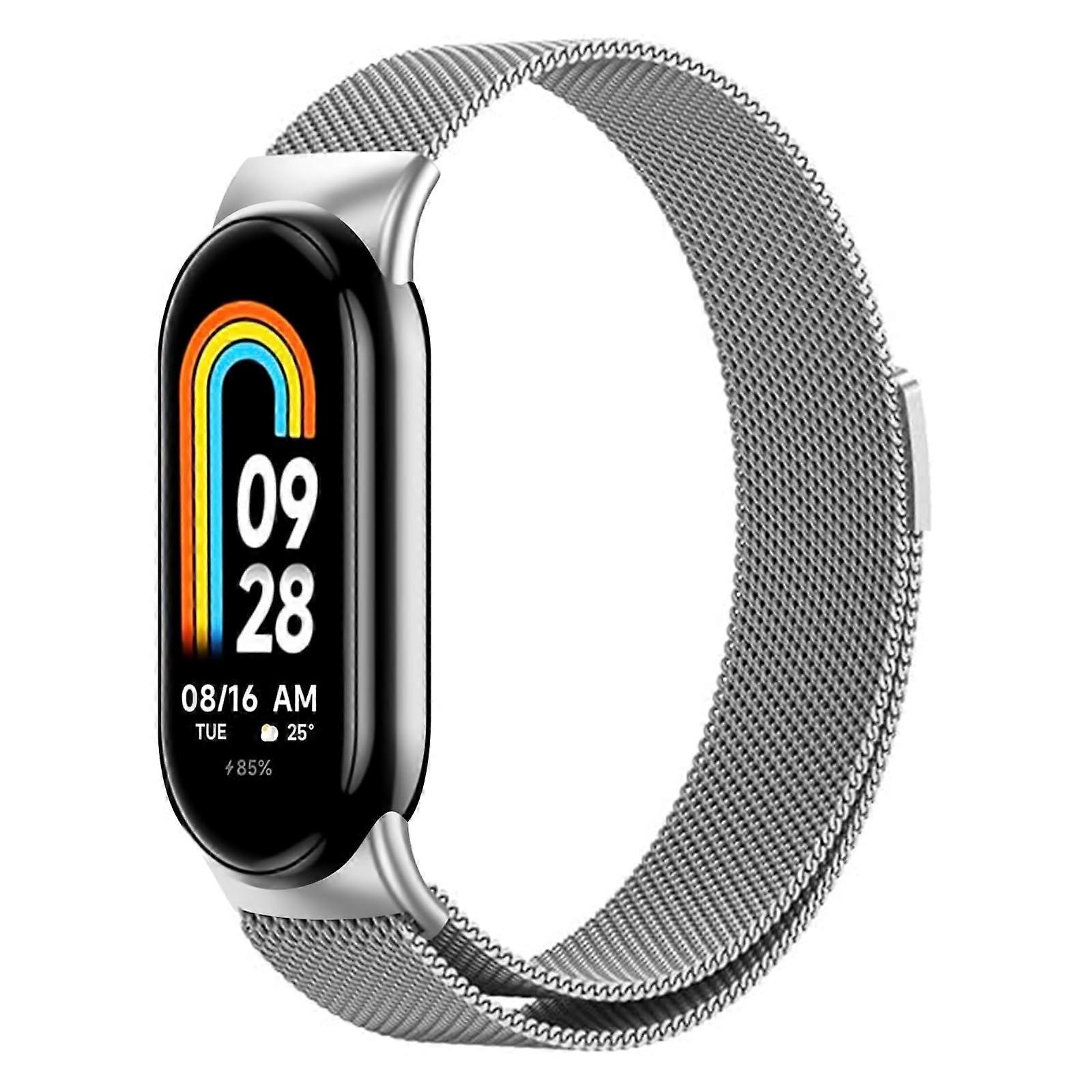 Stainless Steel Mesh Replacement Strap, Adjustable Silver Wristband for Xiaomi Mi Band 8