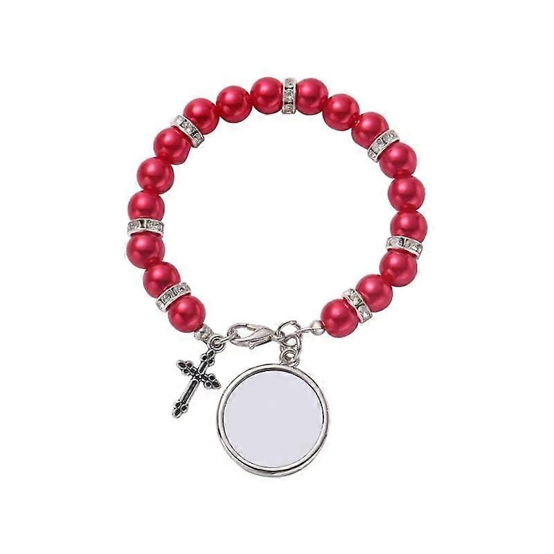 Red sublimation blank rosary bracelets, 20 pieces Overview These red rosary bracelets are blank sublimationready pieces that include an aluminium sheet for heat transfer printing. Each bracelet lets you add a custom photo or design, making them practical for gifts, party favors, and religious or commemorative items. Key features and benefits Quantity and color: Set of 20 bracelets in red for consistent presentation at events or for bulk crafting. Ready for : Each bracelet includes an aluminium insert designed for heat transfer and sublimation printing so you can apply photos or graphics. Size and fit: Each bracelet measures approximately 9.5 cm (3.74 inches) across; individual beads are about 7 mm (0.28 inches). Lightweight and compact for comfortable wear and easy distribution. Materials and durability: Beads are made of ABS and components use alloy materials; aluminium sheet is provided for printing. Construction is durable for regular handling and event use. Versatile use: Suitable for crafting, keepsakes, event favors, and religious items. Works with standard sublimation and heat transfer equipment. Practical uses and scenarios Event favors: with names or dates for weddings, anniversaries, or birthday parties and include with place settings or favor bags. Religious and memorial items: Add prayers, images, or photos and attach the bracelet to prayer cards, memorial cards, or program booklets. Fundraising and promotional items: Create custom designs for charity events, church groups, or community fundraisers and distribute to supporters. Additional notes Compatible with common sublimation and heat transfer printing methods and equipment. Use appropriate transfer paper or processes according to your printer and heat press instructions. Each bracelet is designed for easy personalization and lightweight daily wear.