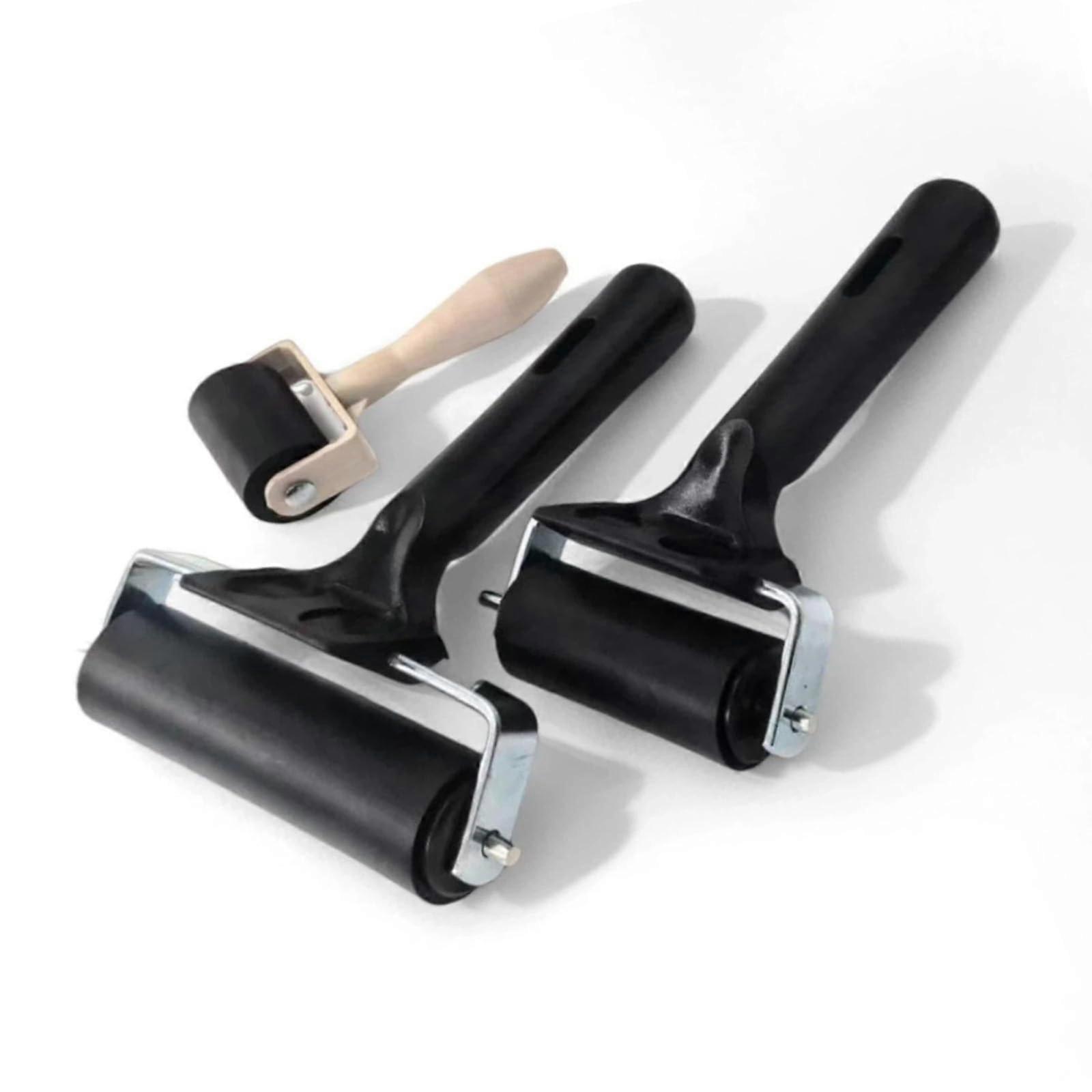 Rubber Brayer Roller Set 3Pack, Hard Rubber Printmaking Rollers with Ergonomic Grip, 1.4/2.4/4 Inch for Ink, Glue, Wallpaper and Crafts