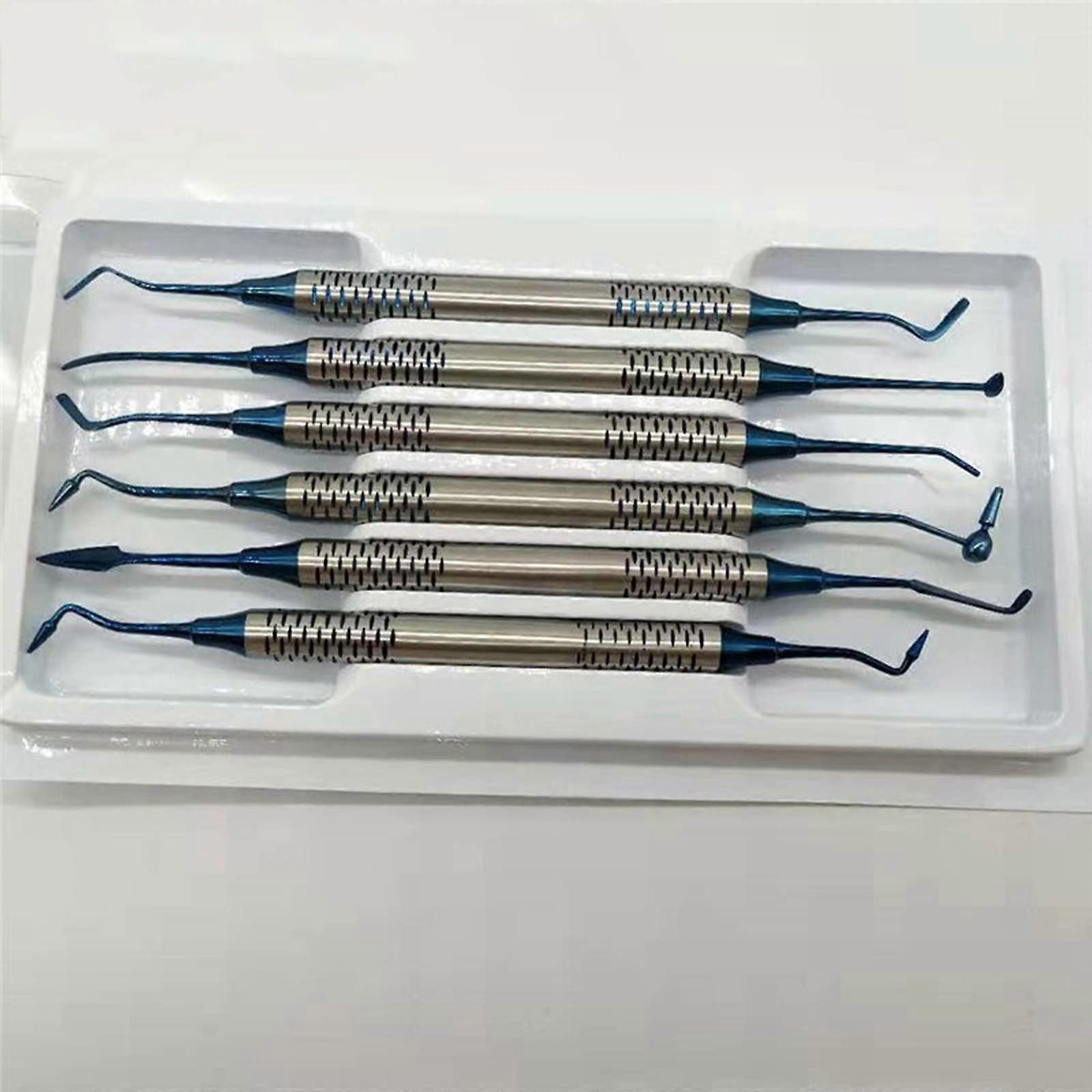 Dental Restoration Tools 6 in 1 Stainless Steel Composite Instruments Kit with Blue Ergonomic Handle