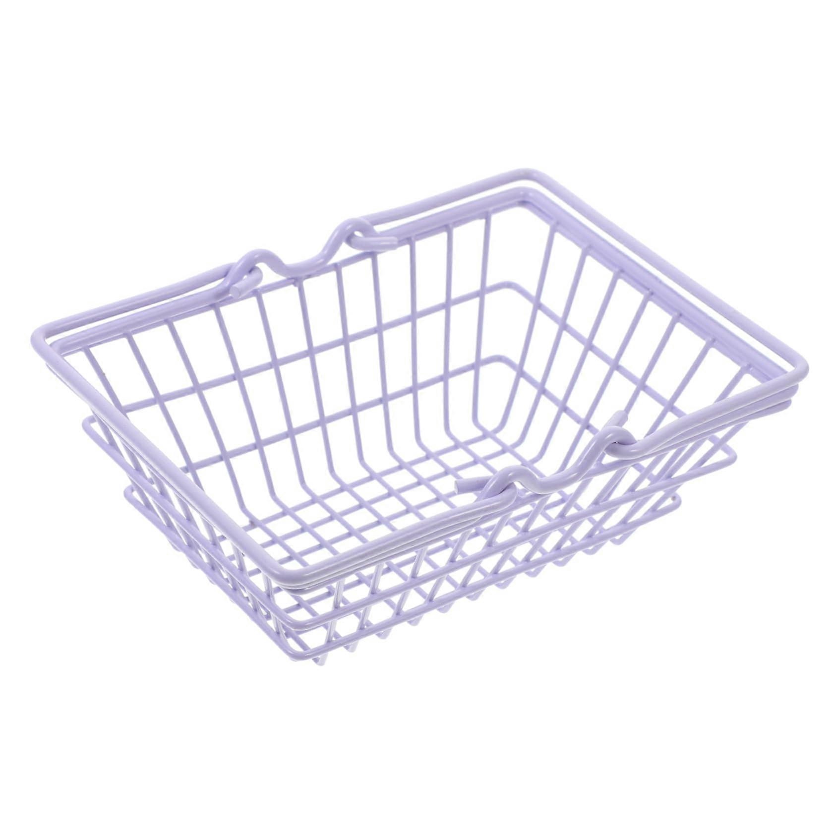 Mini Metal Storage Basket with Handle Purple Desktop Organizer for Home Office Jewelry Cosmetics