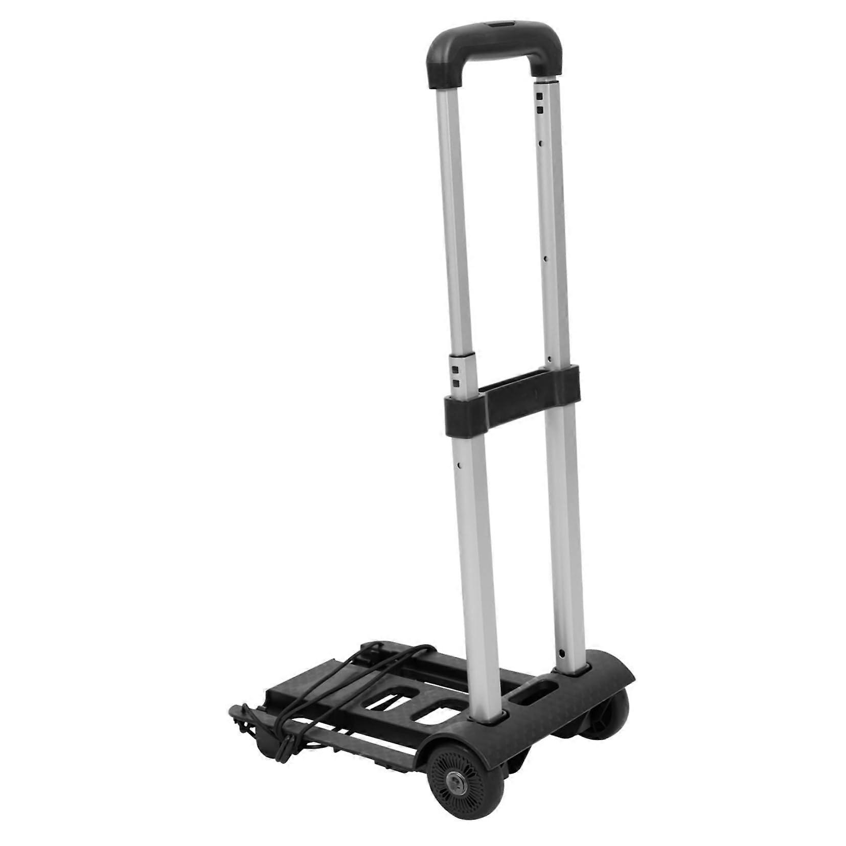 Package includes: 1 x Trolley Cart with Rope Overview A foldable, collapsible trolley cart made with iron and aluminum for everyday transporting needs. The compact folding size lets you store the cart easily while the included rope helps secure loads during use. Color: black. Key benefits Space saving foldable design: folds down to 56.00 x 23.00 x 10.00 cm for convenient storage in a car trunk, closet, or under a bed. Durable construction: iron frame combined with aluminum components for a balance of strength and manageable weight. Secure transport: included rope helps tie down items so they remain stable while moving. Ergonomic and versatile: designed for carrying a wide range of goods from groceries and luggage to boxes and parcels. Easy handling: collapsible format makes the cart simple to open, close, and store when not in use. Features Materials: iron and aluminum for structural support and longevity. Color: black. Folded size: 56.00 x 23.00 x 10.00 cm (22.01 x 9.04 x 3.93 in). Included accessories: rope for securing loads. Multipurpose: suitable for shopping, travel, storage moves, and everyday transport tasks. How this cart solves common problems Reduces physical strain by letting you roll heavy or bulky items instead of carrying them by hand. Saves storage space when not in use thanks to the compact folded dimensions. Keeps loads stable during transport using the included rope and the cart structure, reducing the risk of dropped items. Provides a single tool that replaces repeated trips or makes singleperson moves more practical. Practical use scenarios Grocery trips: load multiple bags and roll them from the parking lot to your home, then fold the cart for compact storage. Travel and luggage: move suitcases or duffel bags through stations or between car and accommodation without heavy lifting. Small moves and deliveries: transport boxes, small furniture items, or supplies around the house, garage, or office. What to expect A reliable, foldable trolley cart that fits into daily routines where lifting and carrying would otherwise be difficult. The combination of iron and aluminum construction provides practical durability, while the compact folded size and included rope make storage and load securing straightforward. Specifications Material: iron, aluminum Color: black Folded size: 56.00 x 23.00 x 10.00 cm Package contents: 1 x Trolley Cart with Rope