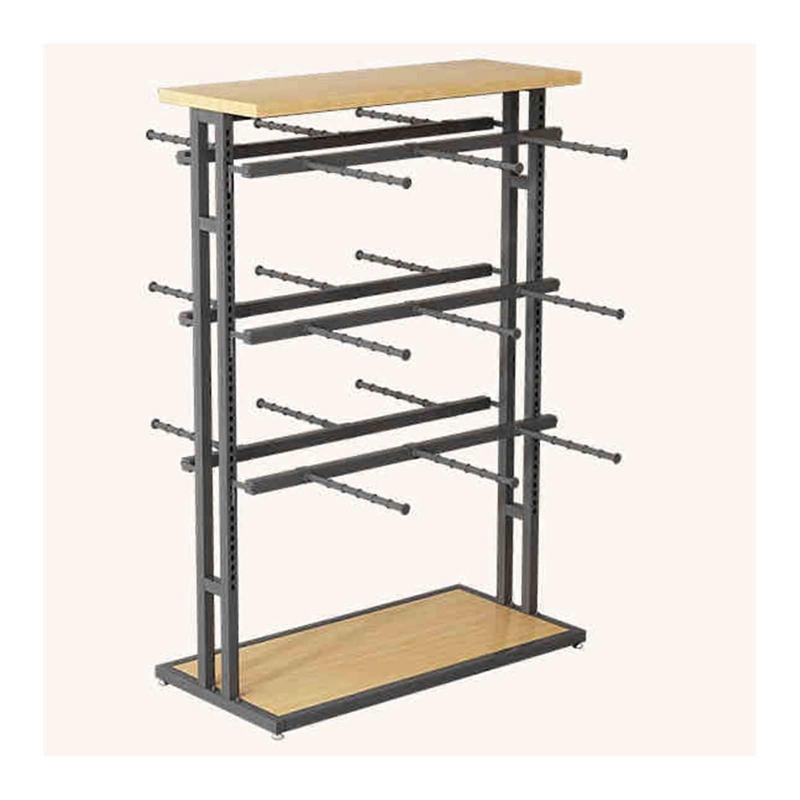 Underwear Display Rack / Clothing Store Display Rack / Retail Display Rack Compact, sturdy display rack designed to maximize vertical space for small garments and accessories. The multilayer hanging rod layout keeps bras, underwear, socks, scarves, and shorts organized and visible, improving presentation and making it easier for customers to browse. Key benefits Efficient use of space: Multilayer, doublesided hanging design increases capacity without expanding floor footprint. Improved presentation: Neat, layered display highlights products and makes selection convenient for customers. Durable and stable: Thick iron tubing, square tube reinforcement, and a large stable base reduce wobble and support multiple items. Flexible display: Adjustable shelf spacing accommodates different garment lengths and prevents items from touching the floor. Low maintenance: Smooth temperature paint finish is scratchresistant and wipes clean with a damp cloth. Features Open, doublesided storage for easy access and visual merchandising. quality iron construction with temperature paint for wear resistance. Adjustable spacing between layers to fit bras, underwear, socks, scarves, gloves, swimsuits, shorts, and small accessories. Simple assembly required; includes rack and accessories in the package. Stable base and reinforced frame designed to minimize deformation under load. Practical applications (examples) Boutique or clothing store: Present multiple styles and sizes in a compact retail layout to boost product visibility. Children s clothing or specialty shops: Neatly display small items and seasonal collections for easy customer browsing. Home bedroom or dormitory: Organize underwear, socks, scarves, and swimwear while keeping garments easy to find. Specifications Size: 135 x 100 x 45 cm Color: Black Material: Iron Craftsmanship: temperature paint Is assembly required: Yes Suitable for: Bra, socks, underwear, scarf, gloves, accessories, swimsuit, shorts Package contents 1 x Underwear rack and accessories Notes Only the clothing display rack and included accessories are supplied. Other items shown are not included. Product size is measured manually; a 1 to 2 cm variance is normal. Actual color may vary slightly from photos due to lighting and screen differences.