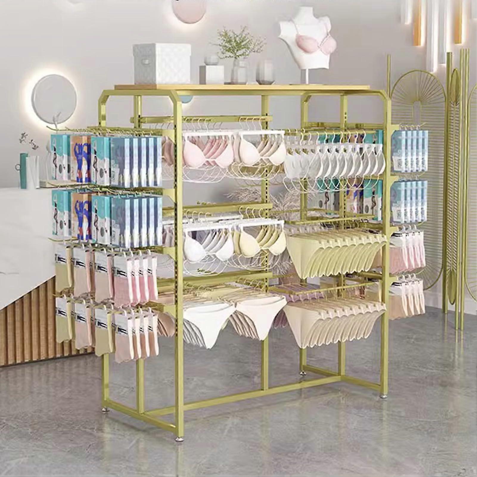 Underwear Display Rack Gold Metal MultiLayer Bra and Panty Stand for Boutique Retail Store 100x45x135cm