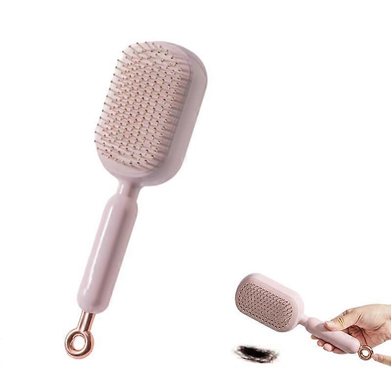 Self Cleaning Hair Brush with Retractable Cushion Base and Gentle Scalp Massage, Compact Pink