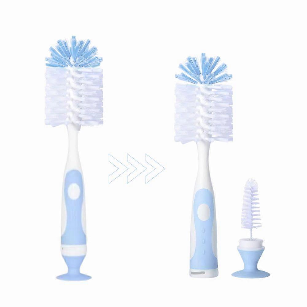 2 in 1 Baby Bottle and Nipple Brush with Suction Stand, Soft Bristles, NonScratch, Blue
