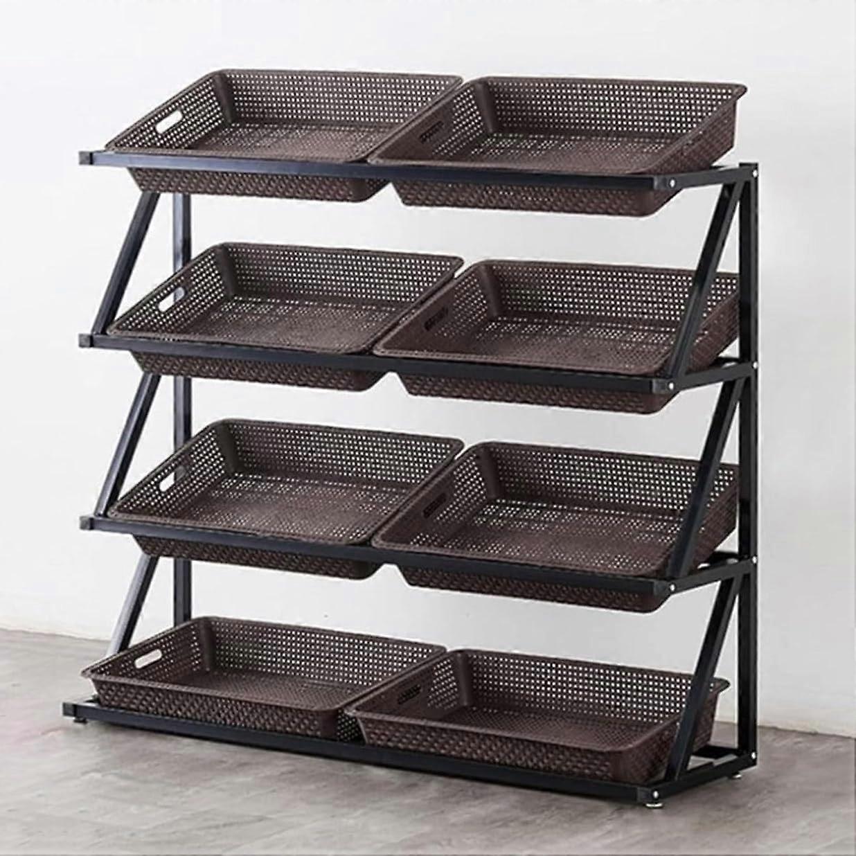 Supermarket Display Rack with Baskets, Multilayer Metal Storage Shelving for Fruit, Vegetables, Snacks, 120x35x110cm Brown