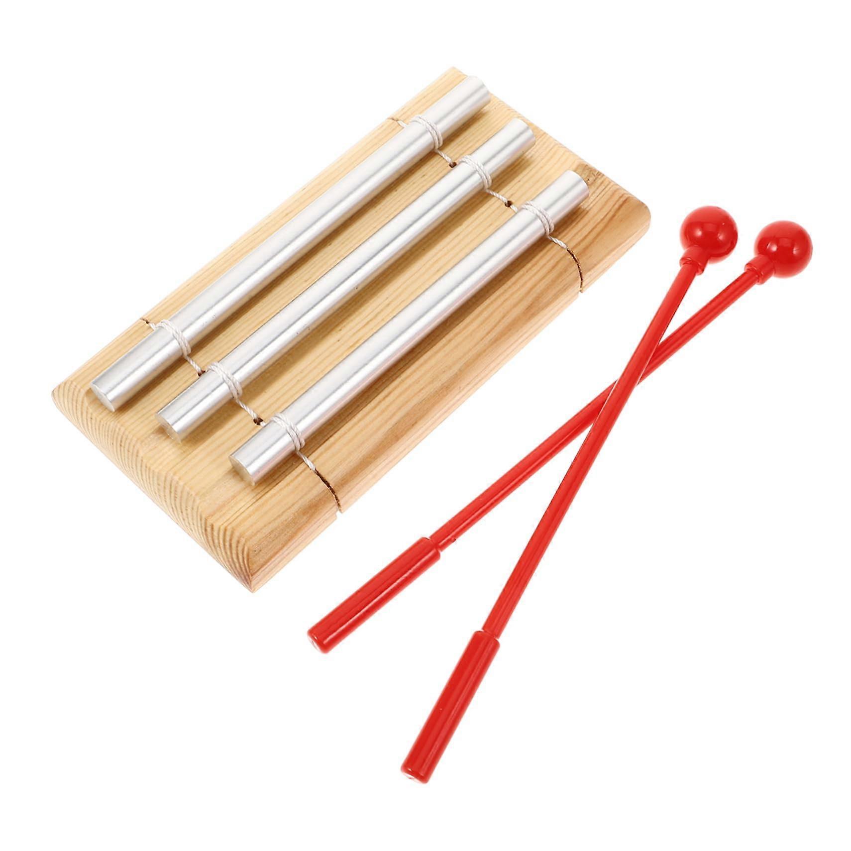 Three Tone Meditation Chime with Mallet, Adjustable Volume Wooden Hand Chime for Yoga and Classroom
