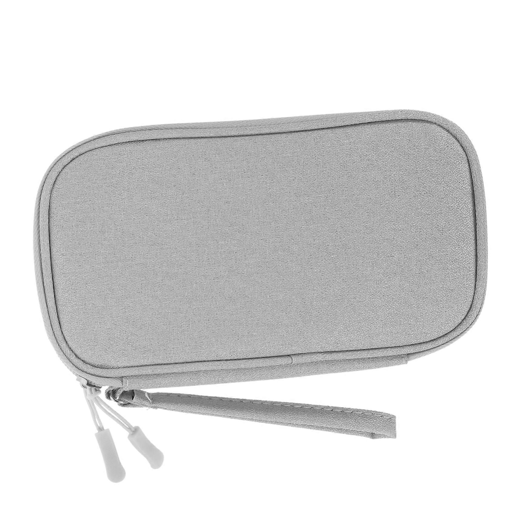 Electronic Accessories Organizer with Dual Compartments, Compact Grey Travel Cable and Earphone Case