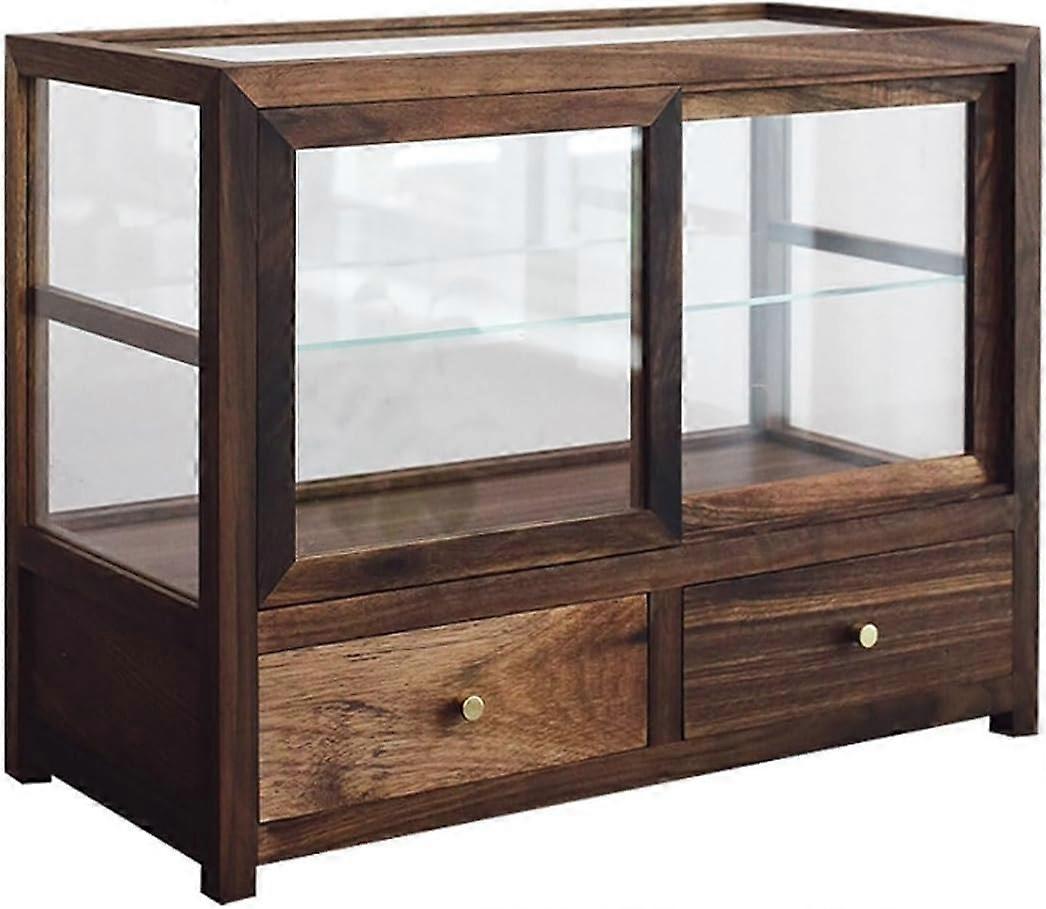 Luxury Solid Wood Glass Display Case with Drawers, Black Walnut Cabinet for Jewelry and Collectibles