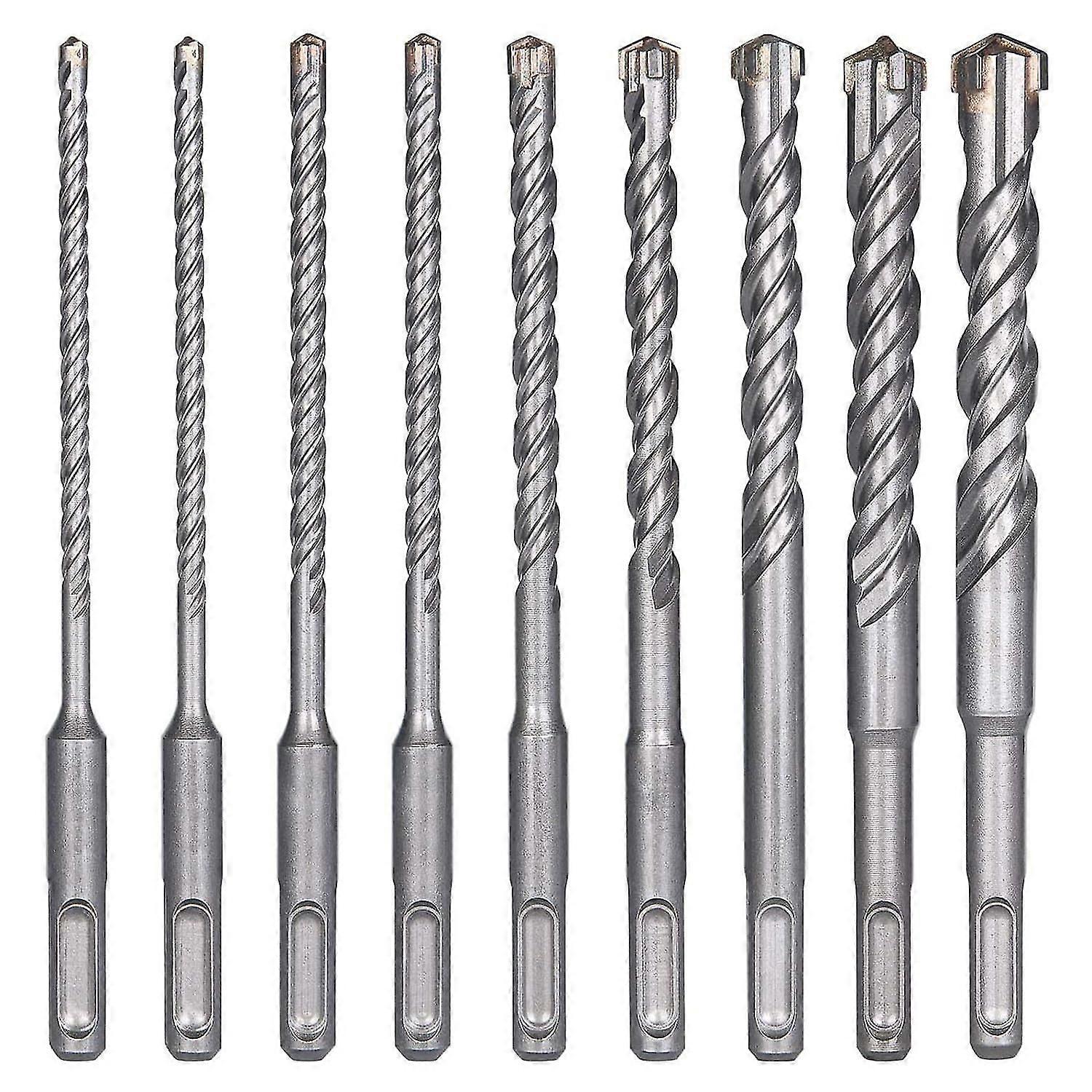 9pcs SDS-Plus Hammer Drill Bit Set for Concrete, Brick, Stone, Tile (5-16mm x 160mm)