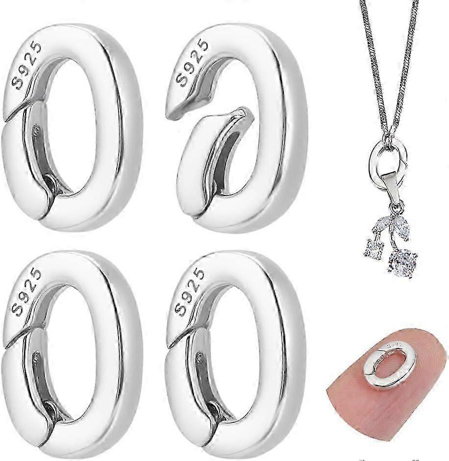 4 Pcs Sterling Silver Spring Gate Rings, Oval Clasps for Jewelry Making