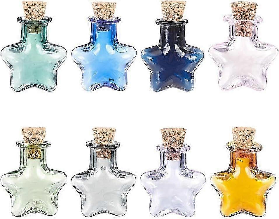 8pcs Mini Star Wish Bottles, 8 Colors Tiny Glass Jars with Cork Stoppers for Wedding Birthday Decor