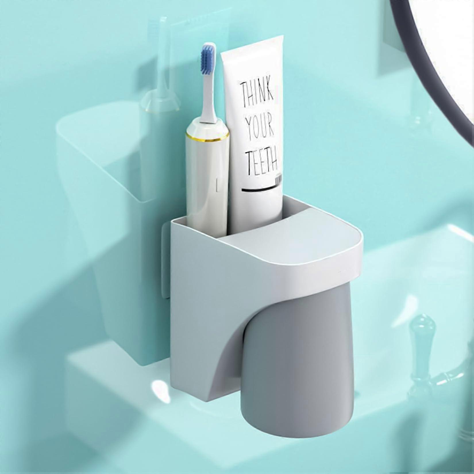 Wall Mounted Magnetic Toothbrush Holder with Cups, Dustproof Bathroom Organizer for Oral B and Waterpik, Light Grey