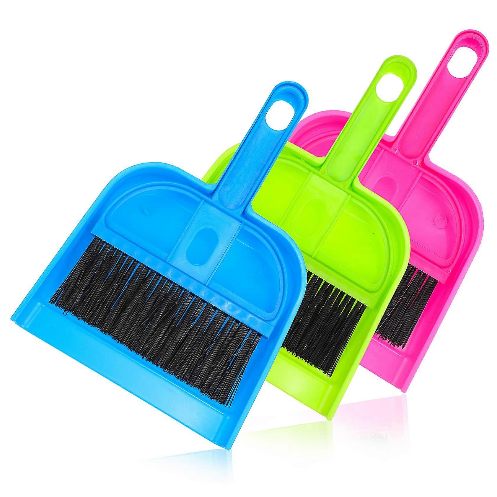 3 Sets Mini Dustpan and Brush Set with Comfort Grip for Pet Cages, Tables, Sofas and Car Cleaning
