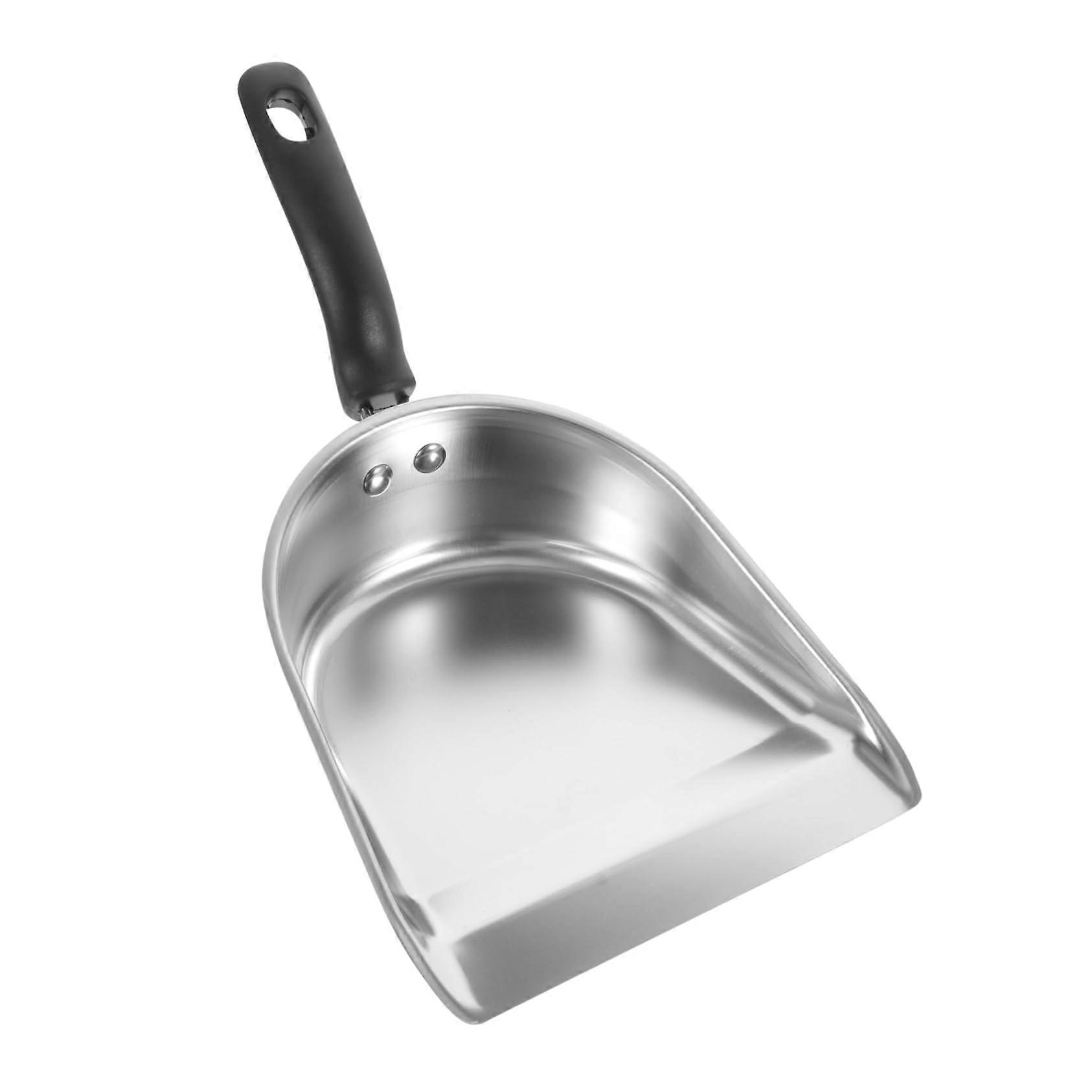 Stainless Steel Sweeping Shovel — Handheld Dustpan with Ergonomic Handle Key benefits Large opening and large capacity: collects more material in one sweep, reducing trips to the bin and minimizing spills. Multipurpose scooper: a stainless steel scooper designed to handle both household messes and dry food items, so the same tool can be used for cleaning and for measured transfers. Comfortable, efficient use: ergonomic handle provides a secure, comfortable grip so you can work with less effort and greater speed. Durable, attractive finish: fine workmanship and an elegant surface make the dustpan suitable for everyday use and for serving in visible areas like kitchens, bars, or parties. Features Material: stainless steel scooper and dustpan for durability and easy cleaning. Design: large opening and deep body for capacity; heavyduty metal construction for longterm use. Handle: ergonomically shaped to fit the hand comfortably and support efficient sweeping and scooping. Multipurpose function: intended to pick up debris and to transfer dry food items such as tea, dried fruit, rice, flour, pet food and other similar items. Finish and fit: refined workmanship and an attractive surface make it appropriate for use in the kitchen, home, bar, or at parties. How this product solves common problems Faster cleanup: the wide mouth and capacity let you clear countertops, floors, or work surfaces with fewer passes. Fewer spills when transferring: the deep stainless scooper helps move loose or granular items without scattering. One tool for multiple tasks: use the same durable dustpan for sweeping small debris, transferring dry ingredients, or serving items at gatherings, reducing clutter and saving storage space. Comfortable extended use: the ergonomic handle reduces hand fatigue during repeated scooping or cleanup tasks. Typical use scenarios Kitchen baking and prep: sweep flour, crumbs, and small spills from counters and transfer measured dry ingredients like rice or flour into containers without mess. Serving at a gathering: present or distribute dried fruit, tea leaves, or snacks at a bar or party with a neat, attractive stainless scooper. Pet and garden care: scoop and move pet food or clean up yard debris using the heavyduty metal dustpan and comfortable handle. What to expect A sturdy, stainless steel handheld dustpan with a large opening and roomy capacity. Multipurpose performance suitable for both cleaning and dryitem transfer. An ergonomic handle and polished surface that combine functionality with a presentable appearance for home or event use.