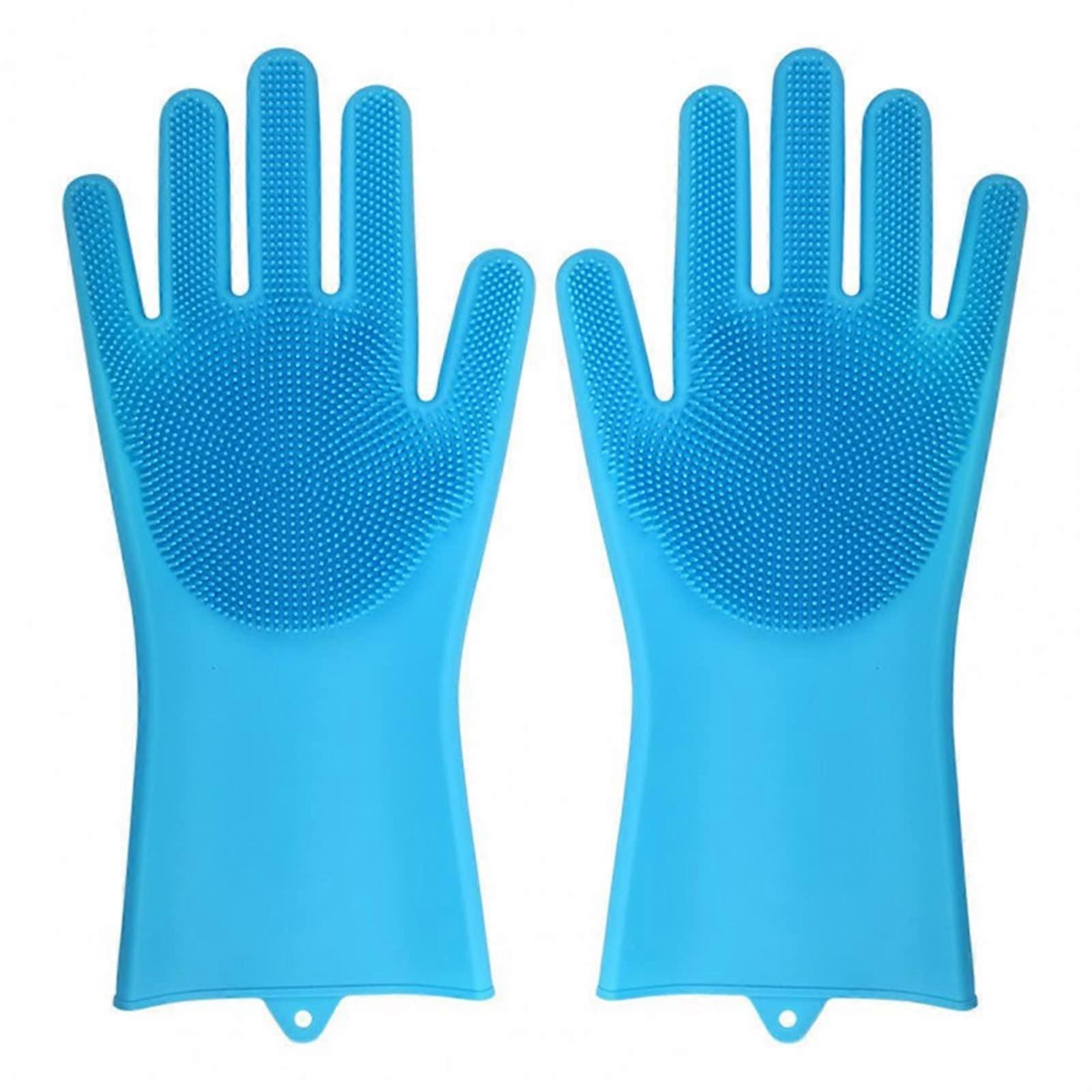 Heat Resistant Dishwashing Gloves with Silicone Scrubber, Waterproof Kitchen Cleaning Gloves Sky Blue Small