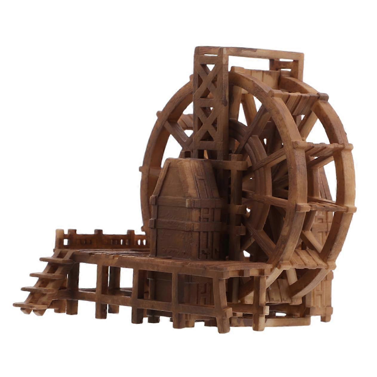 Mini Water Wheel Fountain Ancient Architecture Tabletop Waterfall for Aquarium and Office Relaxation
