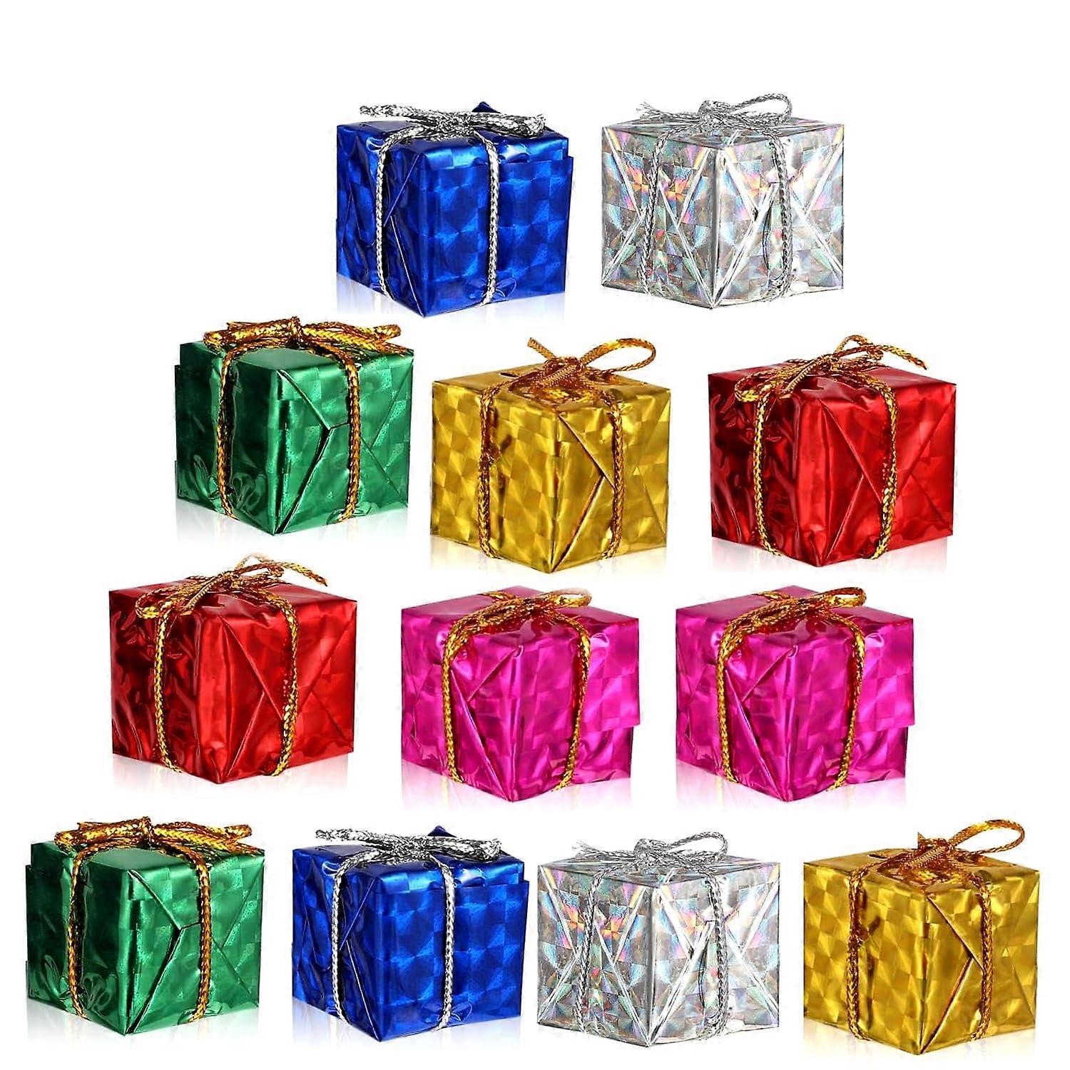 12pcs Christmas Tree Ornaments Mini Glitter Gift Box Decorations with Hanging Rope Hooks 6 Colors