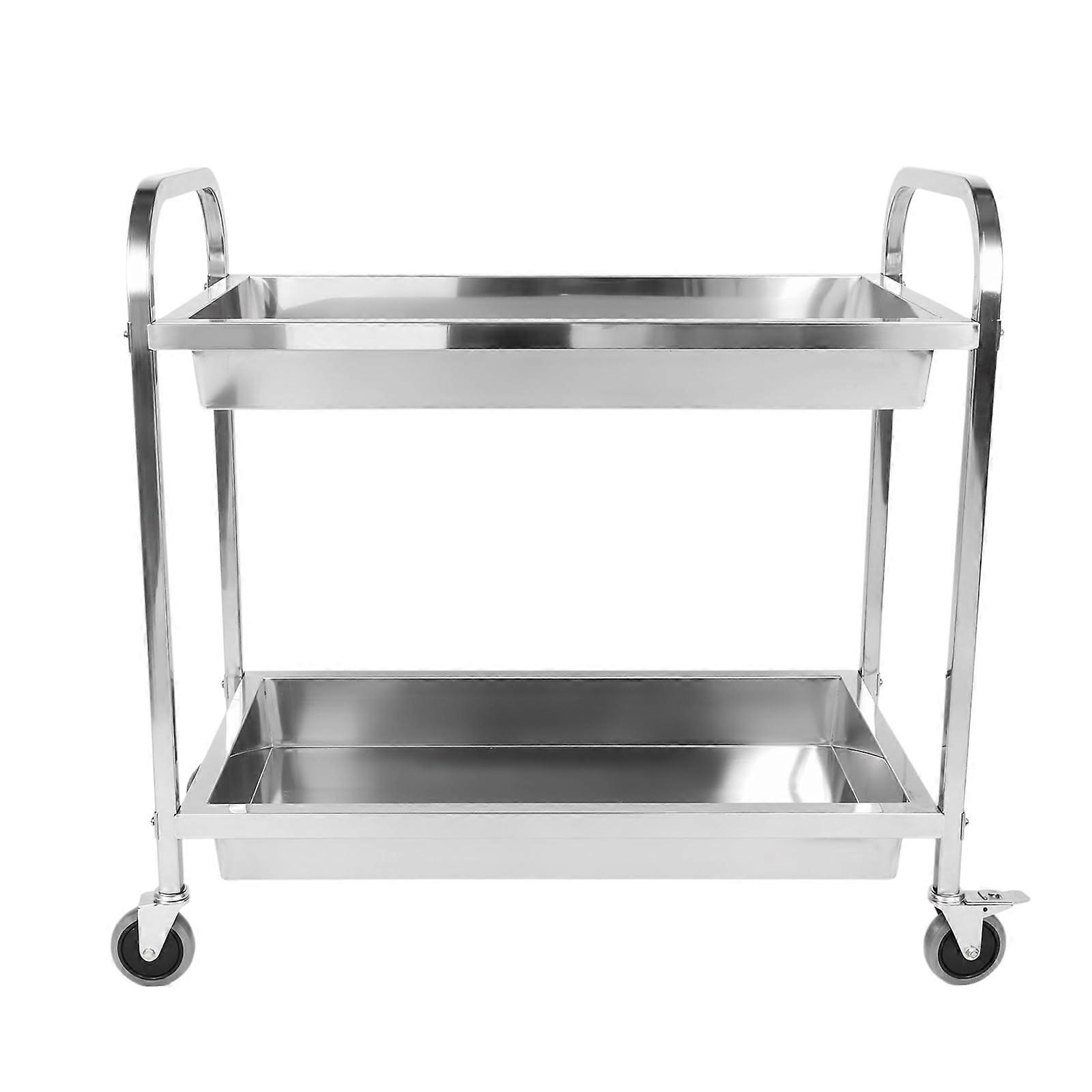 Stainless Steel Utility Cart Heavy Duty TwoTier with Lockable Wheels for Kitchen Restaurant
