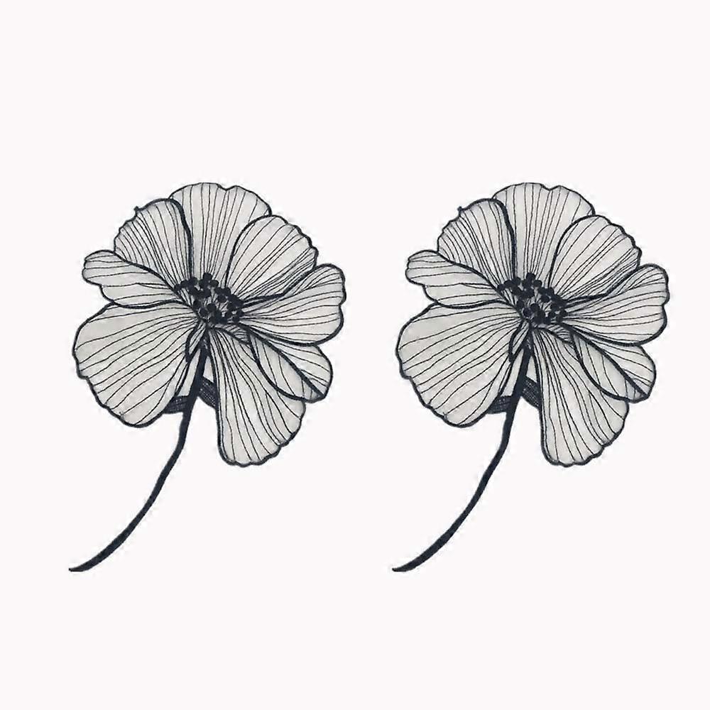 2pc Summer Clothing DIY Black Embroidery Patches Floral Parches Embroidery Lace Appliques Lotus Flower