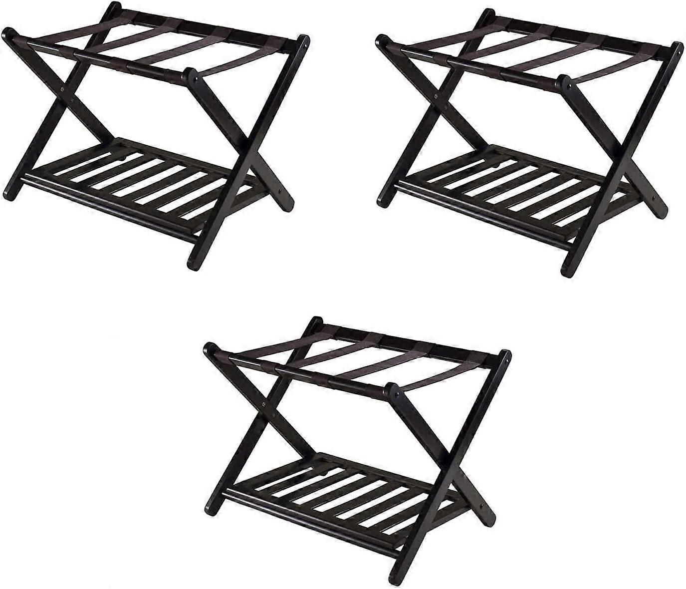 Foldable Bamboo Luggage Rack with Shoe Shelf, DoubleLayer Storage, 200kg Capacity, Black, 3pcs