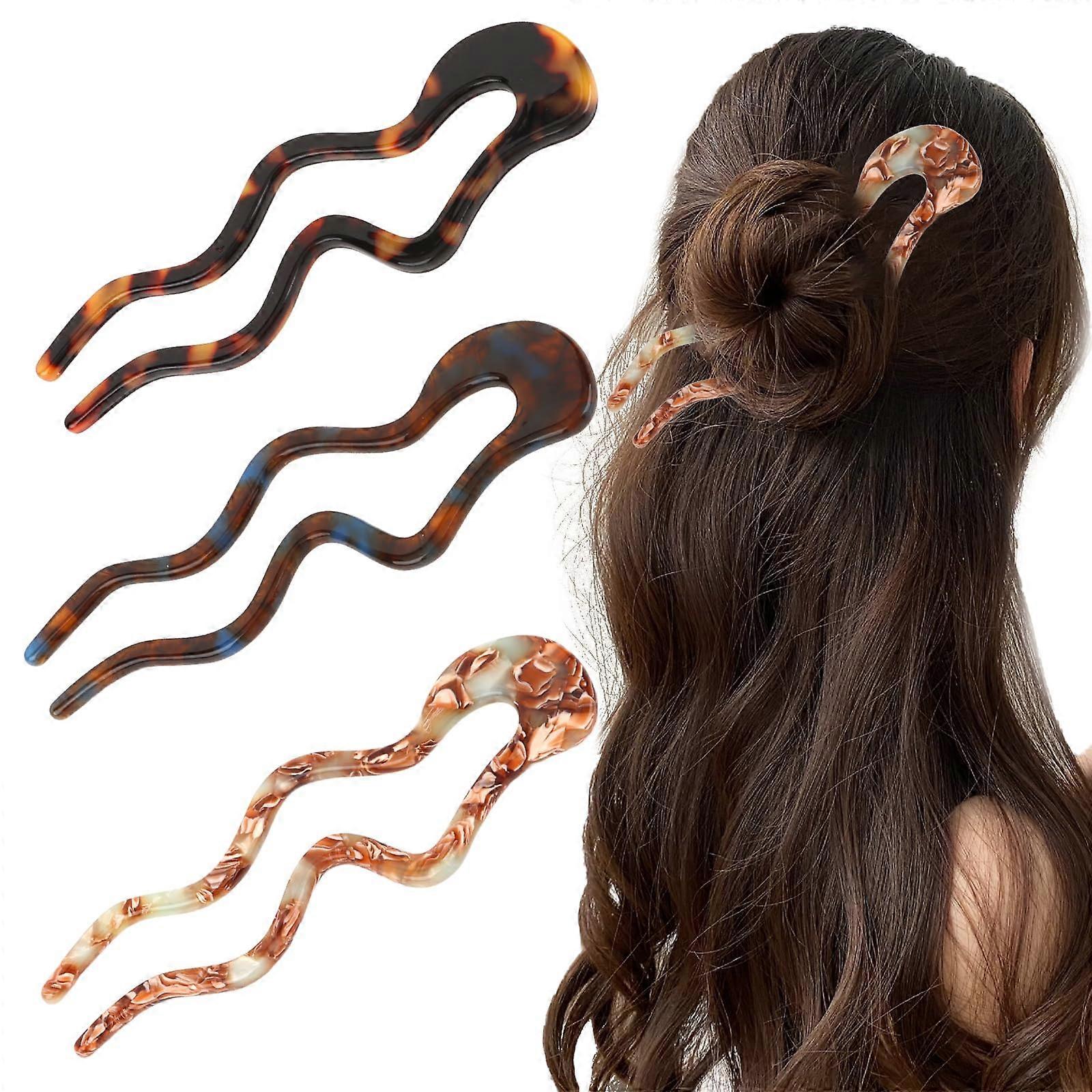 4.5 Inch UShaped French Hairpin Set – Classic Colors and Reliable Hold • Elegant Color Variety: Includes three timeless designs – leopard print red, brown floral print, and Han Dai gradient tones. These versatile styles complement a wide range of outfits for both casual and formal occasions. • Durable, Quality Material: Crafted from acetic acid material for longlasting use. The smooth surface protects hair from snags or breakage, while the sturdy construction resists bending or cracking. • Secure NonSlip Design: Features a gentle curved shape that grips hair firmly without slipping. The extended section makes placement and removal quick and easy, ensuring a comfortable fit throughout the day. • Functional and Stylish: Ideal for holding hair securely during work, daily activities, or beauty routines like washing your face and applying makeup. Also for enhancing your hairstyle at social events, parties, or romantic dates. • Size: At 4.5 inches, these hairpins provide support for medium to thick hair, offering stability without adding bulk. Whether used for a polished updo at the office, a relaxed halfup style at home, or a chic accessory for an evening out, this set combines practical function with classic style to meet everyday hair styling needs.