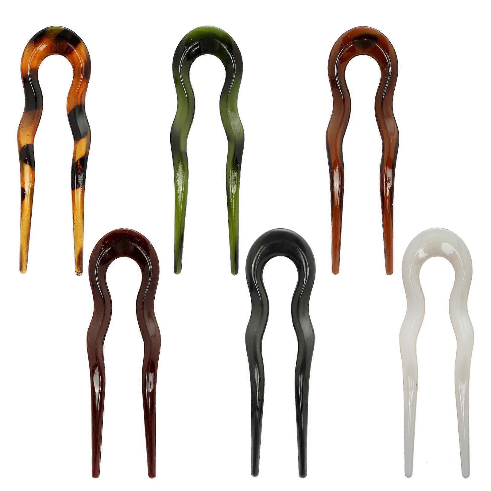 6Pcs Acrylic UShaped Hair Forks, Vintage French Hair Pins for Women, Glossy Bun Clips for Thick or Thin Hair