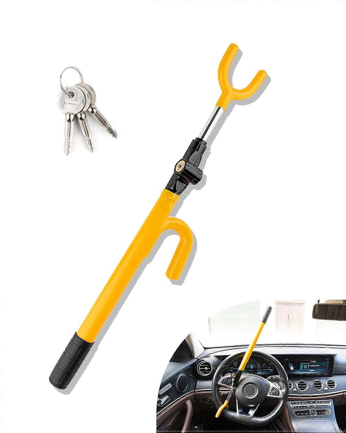 Steering Wheel Lock Heavy Duty AntiTheft Adjustable Fit for Cars Trucks SUVs with Scratch Sleeve Yellow