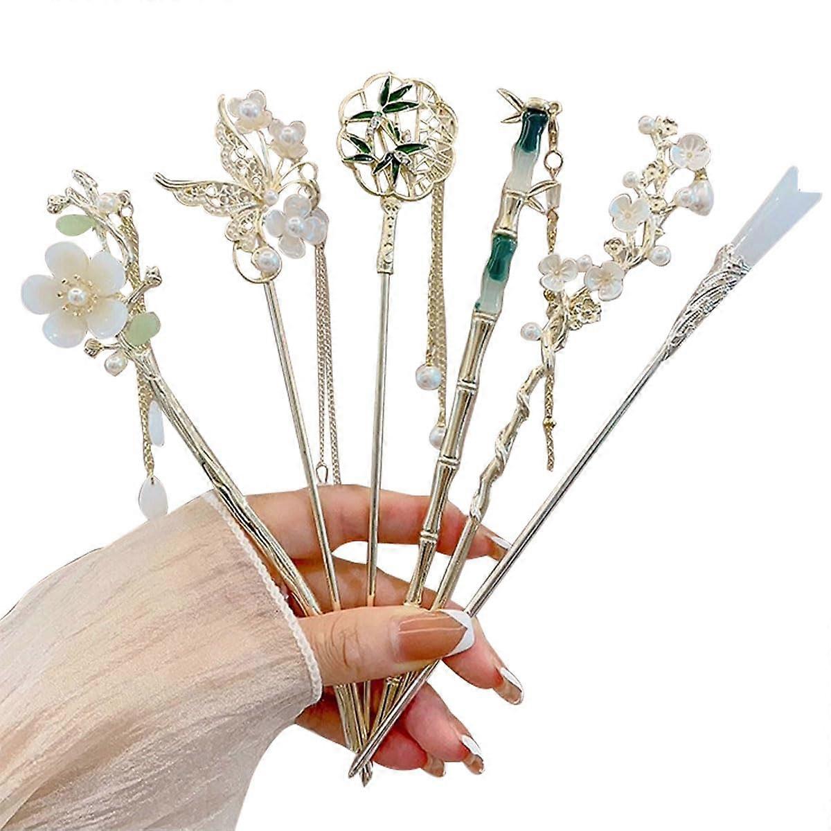 6 Pcs Chinese Vintage Hair Sticks for Women, Elegant Durable Metal Hair Pins Hanfu Accessories Set