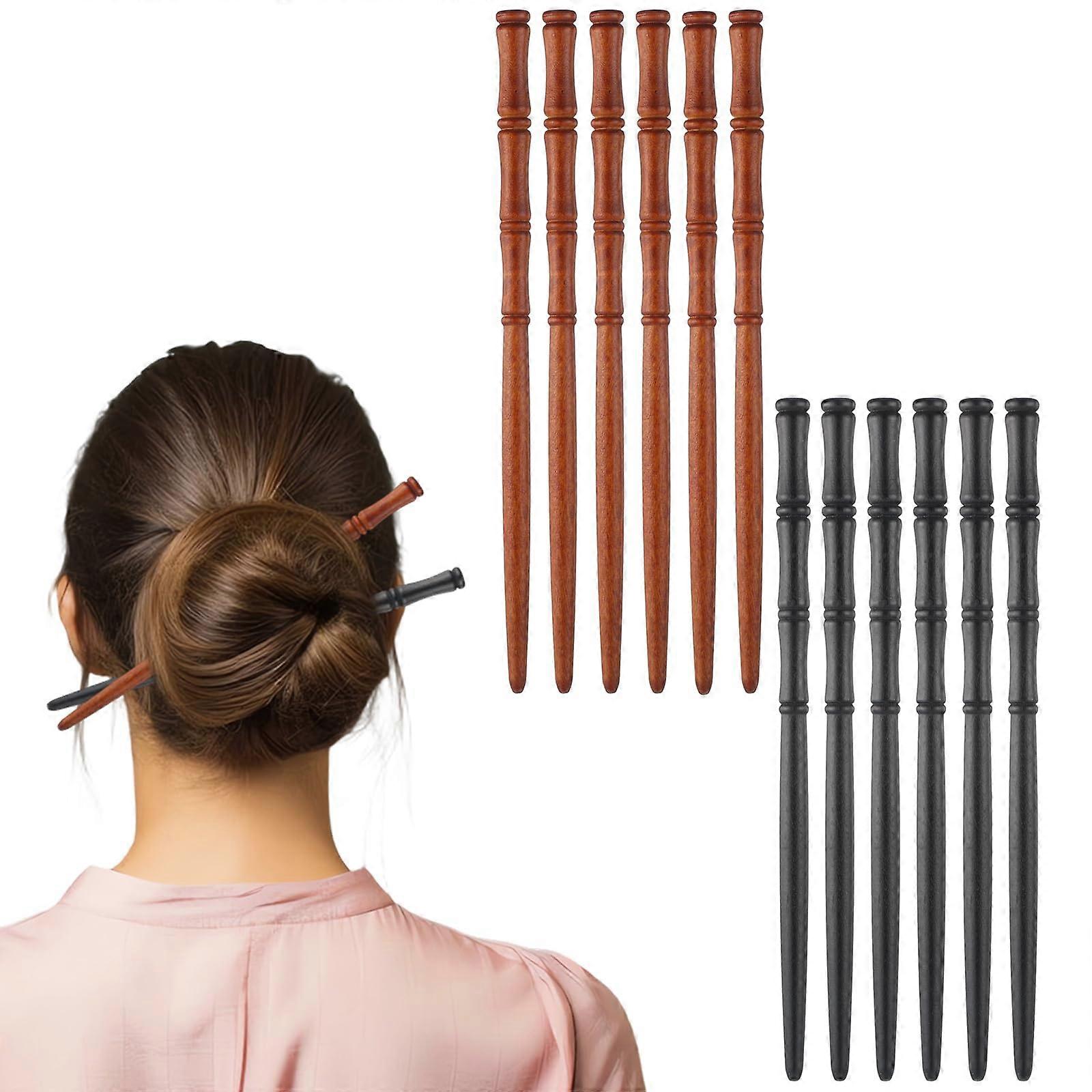 12Pcs Wooden Hair Sticks for Women, Vintage Bamboo Hair Chopsticks for Bun Styling and Long Hair