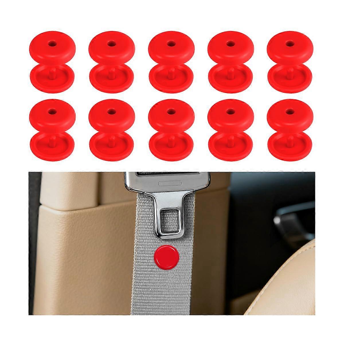 10 Sets Universal Car Seat Belt Stopper Buttons, SnapOn Buckle Holders, AntiSlip for SUV Truck Sedan Red