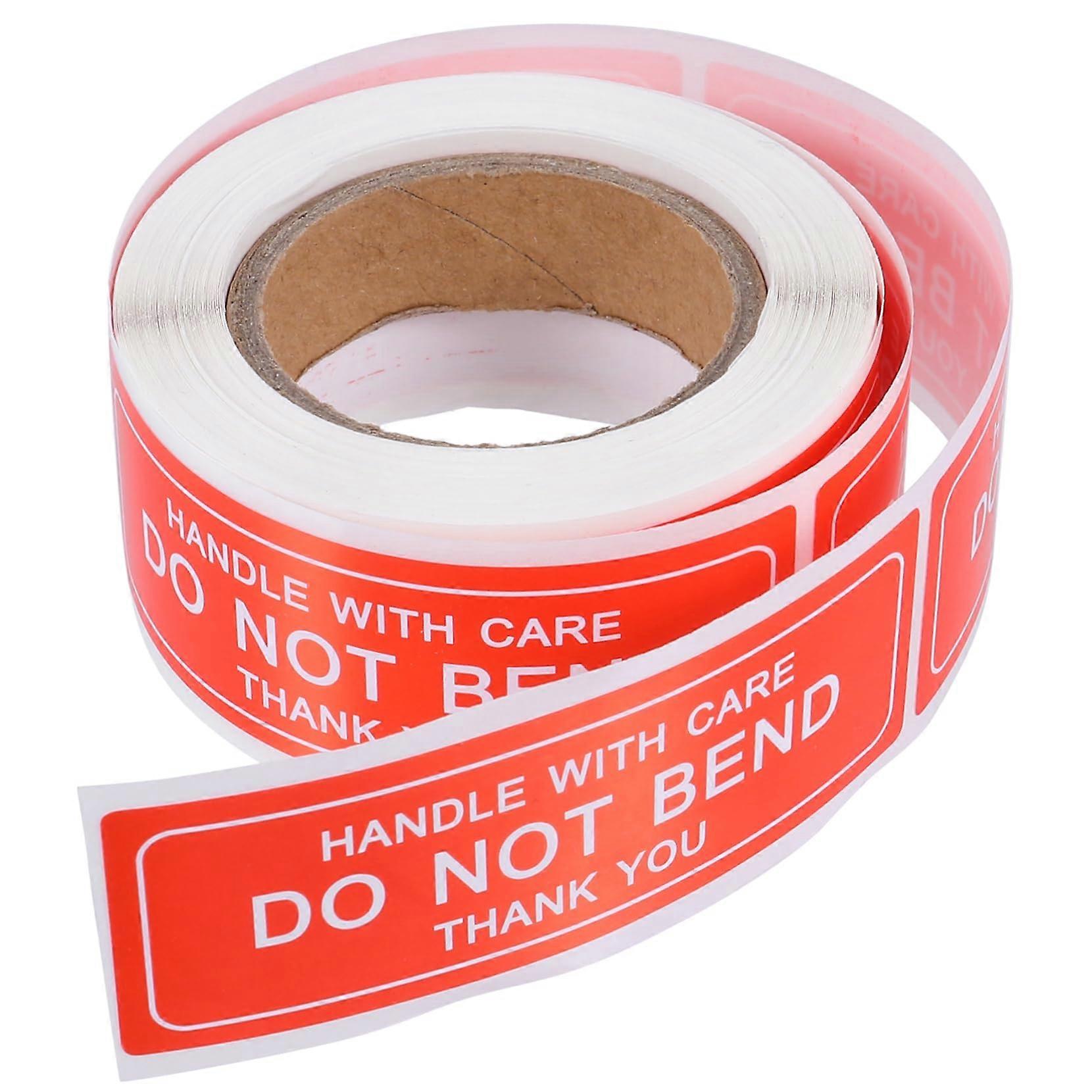 label stickers designed for clear, durable handling alerts and package protection Key benefits Durable during application: labels will not split or rip while being applied, so they stay intact without the need for additional clear tape. visibility handling message: labels include the text handle with care do not bend thank you in bright, easy to read lettering to draw attention to fragile items. Smudge and scratch resistant: printed on materials that support clear printing and resist smudging and surface scratches for reliable legibility. Red fragile design: bold red color signals fragile contents at a glance, helping handlers identify packages that need careful treatment. Versatile use: suitable for boxes, padded mailers, poly bags, storage containers, and other common surfaces. Product attributes Function: handling and warning labels for and storage. Material and print: robust label material engineered for clear printing and resistance to smears and abrasion. Adhesive performance: strong adhesive designed to hold through normal and handling without peeling. Appearance: bright, easy to read text and eyecatching red fragile stickers for immediate visual impact. Convenience: ready to apply stickers eliminate the need for extra clear tape in most situations. Practical use scenarios Ecommerce : place on outbound boxes and mailers to alert carriers and couriers to handle packages with care and to maintain product presentation with a thank you message. Household and moving: mark boxes of glassware, framed art, and electronics so movers know which boxes require gentler handling. Office and garage organization: label fragile inventory, parts, or storage bins to reduce accidental damage during handling and retrieval. Why customers choose these labels They simplify packing by combining clear handling instructions with a durable, adhesive label that performs without extra tape. The printed message handle with care do not bend thank you provides both instruction and a professional finishing touch for items. The materials and print quality maintain legibility throughout transit, helping protect fragile contents and reduce mishandling. What is included A set of red fragile handling stickers printed with handle with care do not bend thank you, ready to apply to common and storage surfaces.