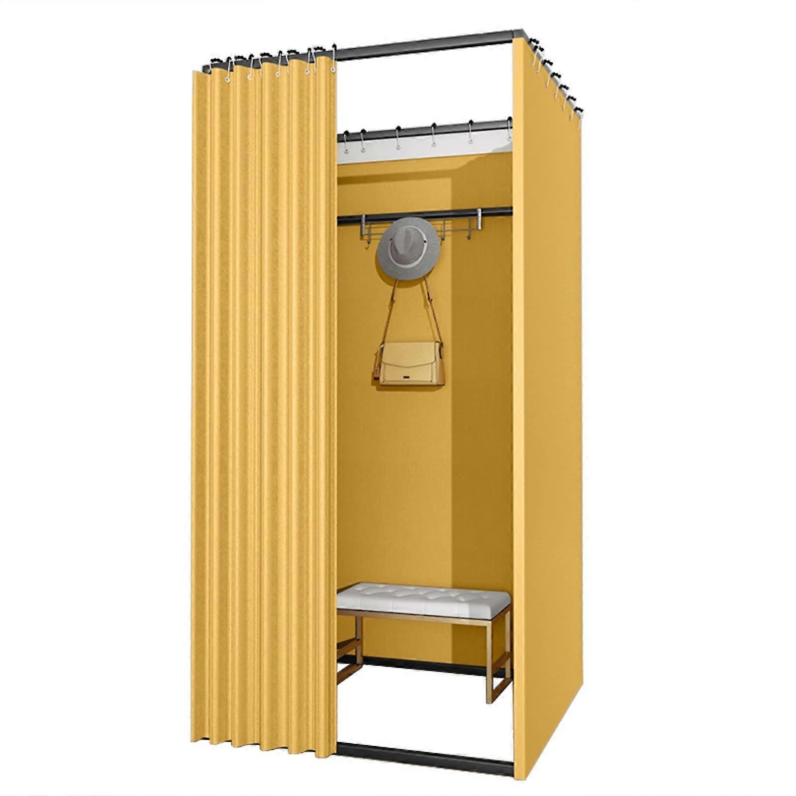 quality, portable fitting room curtain system designed for privacy and light control. Key benefits Maximum privacy: Thick, density fabric blocks more than 95 percent of light and fully encloses the and sides to prevent visibility from outside. Noise reduction: Dense material helps reduce ambient noise for a quieter changing environment. Flexible and portable: Vertical, movable fitting room design lets you create a private changing area wherever you need it. Spacious interior: Designed to accommodate 3 to 4 people comfortably, giving more room to change or assist customers. Features and materials Fabric: Thickened, density shading cloth for strong light blocking and improved privacy. Construction: Fully enclosed and surrounding panels to protect privacy during use. Capacity: Roomy interior suitable for small group use or more comfortable single use. Portability: Lightweight and movable design for temporary installation in retail, events, or living spaces. Care and handling Machine wash cold; tumble dry. Curtains are folded and may arrive wrinkled. Iron before use to restore a smooth appearance. Suggested applications Retail fitting rooms: Create a private, enclosed space for customers in clothing stores or popup shops. Dormitories and bedrooms: Add a private changing area in shared living spaces. Events and outdoor activities: Use at markets, fairs, or other temporary venues where a portable privacy solution is needed. What sets this product apart density fabric that combines strong light blocking with improved sound dampening. Fully enclosed vertical design for reliable privacy. Easy to launder and maintain for repeated use in commercial or settings.