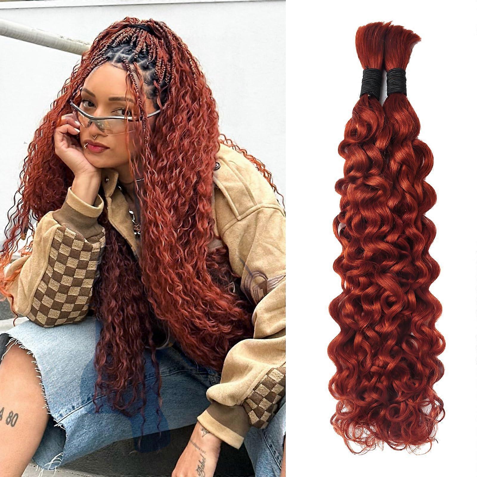 100% Human Hair for Braiding Water Wave 18 Inch Curly 2 Bundles Ginger 350 Boho Knotless Braids