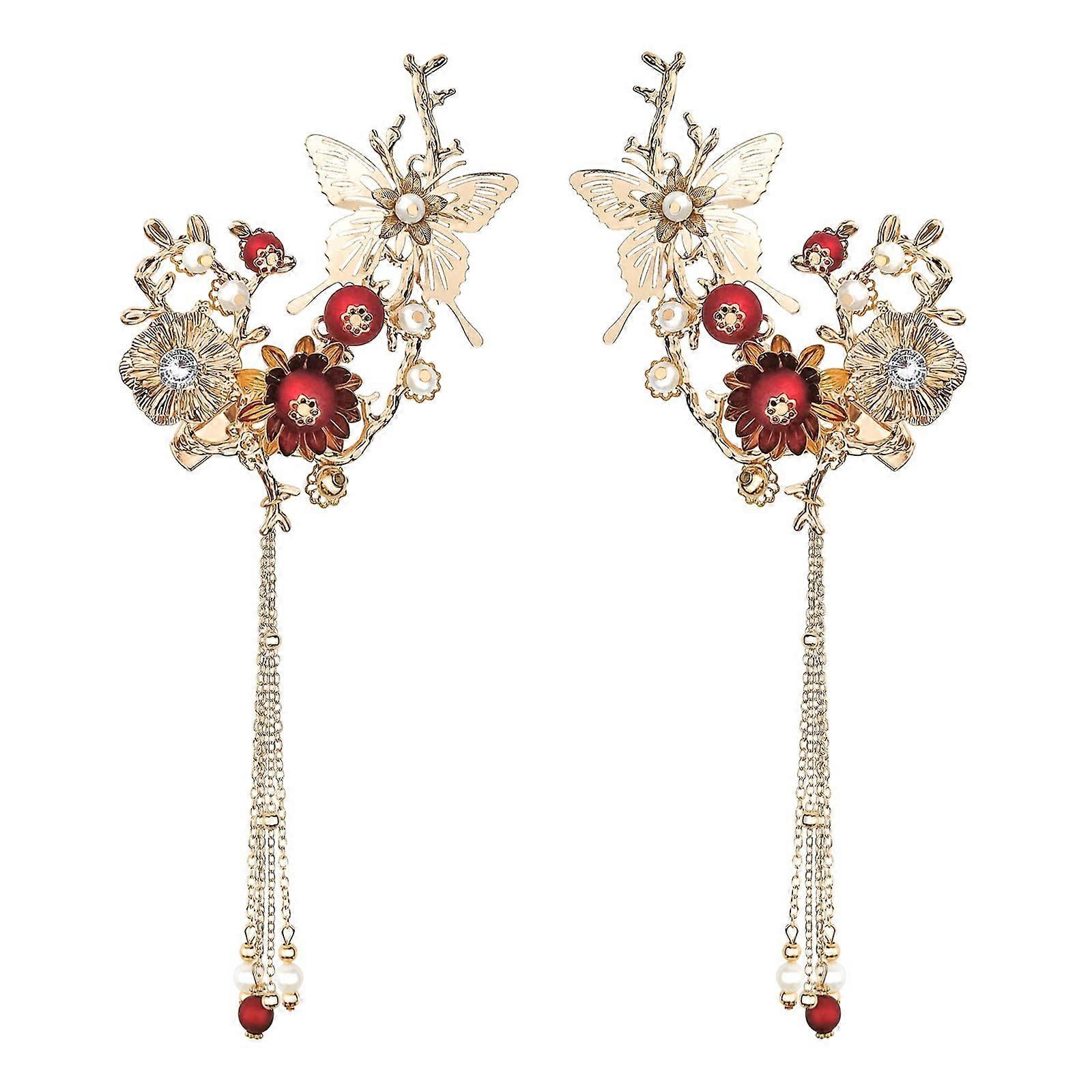2 Pack Vintage Butterfly Tassel Hair Clips for Kimono, Elegant Goldtone Pearl Hairpins with Secure Hold