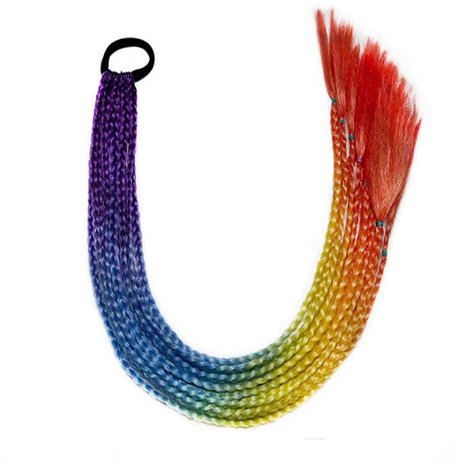 Colorful Braid Hair Extensions Set with Gradient Synthetic Ponytail for Girls Party Cosplay 36#