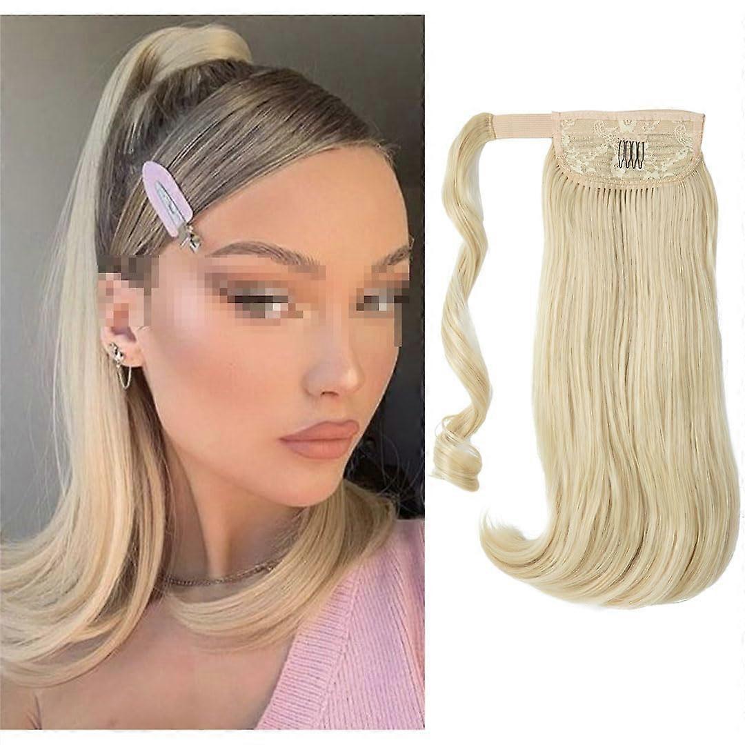 Blonde Curly Clip In Hair Extensions Heat Friendly Natural Wave Synthetic Ponytail Hairpiece