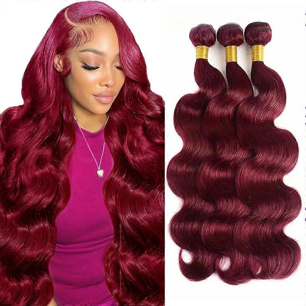 2630 Inch Burgundy Body Wave Human Hair Bundles, Double Weft SewIn Extensions for Volume