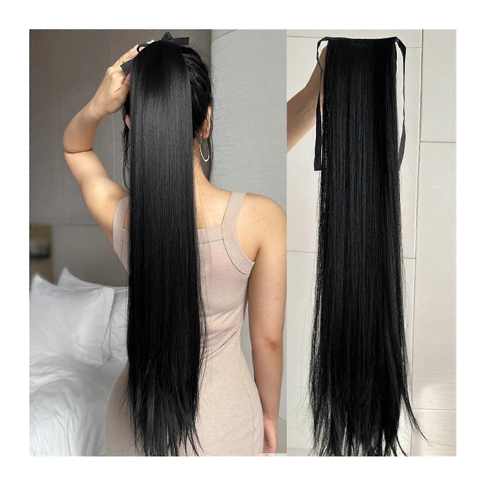 Ponytail Hair Extension Long Straight Clip In Wrap Around Heat Resistant Synthetic Hairpiece 85CM